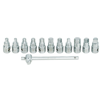 Набор для откручивания масляных пробок, 12 предметов мспользуется для демонтажа сливных пробок картера двигателя, КПП и других технических узлов автомобиля. Подходит для работы с пробками различных размеров и типов, включая повреждённые или прикипевшие резьбовые соединения. Изготовлен из прочной инструментальной стали, обеспечивающей долговечность и устойчивость к нагрузкам.