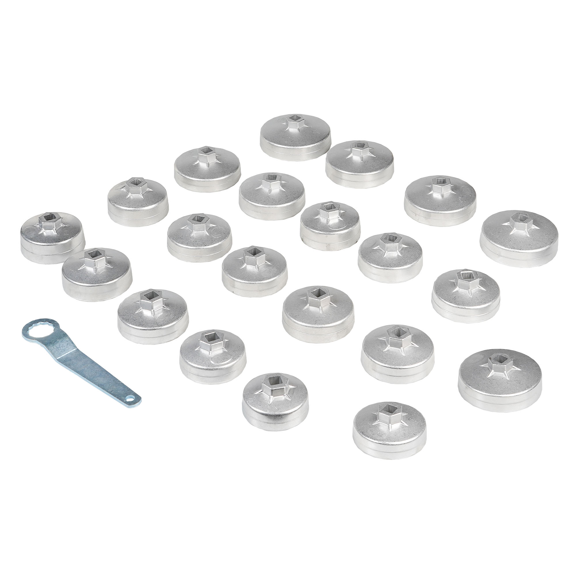 Набор съемников масляных фильтров "Чашки" 22 предмета предназначен для проведения технического обслуживания автомобилей по замене масляных фильров.