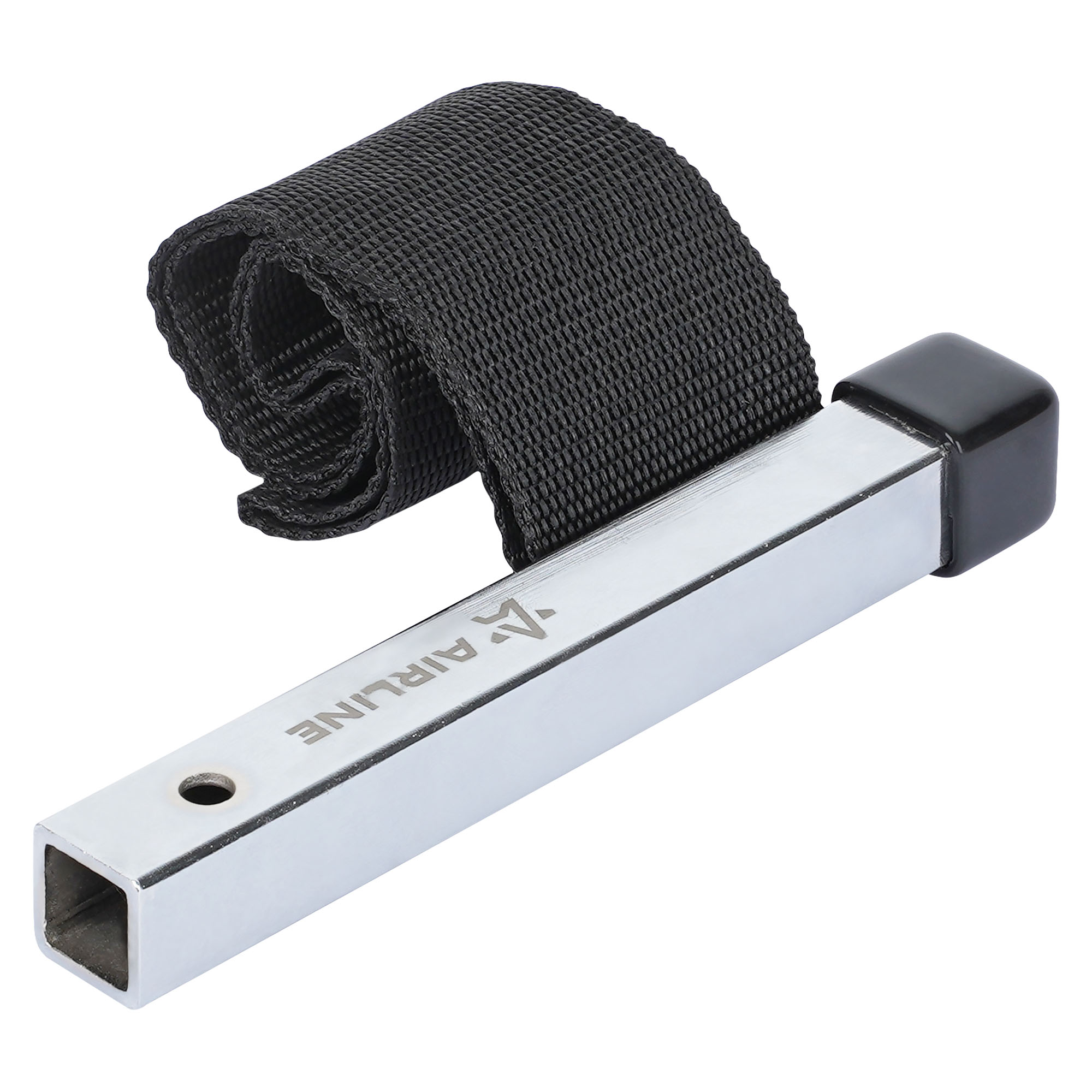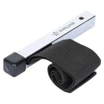 Инструмент поможет произвести демонтаж масляного фильтра автомобиля. Конструкция для съема фильтра представлена в виде квадратного профиля и ленты, с помощью которй закрепляется деталь. Размер ленты равен 150 мм. Ленточный съемник является незаменимым инстркментом во время замены масла в двигателе автомобиля.