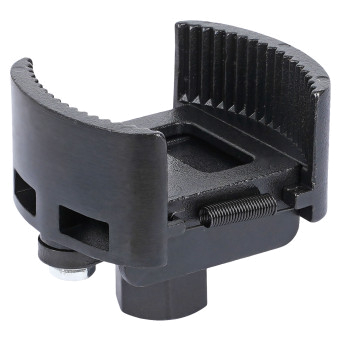 Инструмент поможет произвести демонтаж масляного фильтра автомобиля. Конструкция для съема фильтра представлена в виде полукруглых захватов , с помощью которых закрепляется деталь. Съемник изготовлен из металла. Размер зажима равен 60-80 мм.