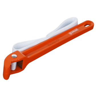 Съемник масляного фильтра с ленточным механизмом поможет быстро и надежно произвести демонтаж одного из машинных устройств. Размер ленты составляет 850 мм. С помощью съемника можно произвести снятие и установку масляного фильтра, а так же любых деталей круглой формы. Инструмент выполнен в форме хомута, который устанавливается на деталь, плотно затягивается и позволяет осуществить ее монтаж или демонтаж.