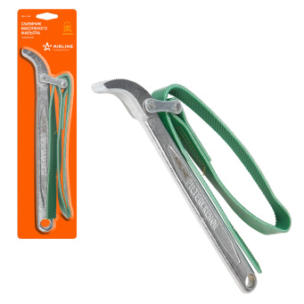 Инструмент поможет произвести демонтаж масляного фильтра автомобиля. Конструкция для съема фильтра представлена в виде ременного зажима, с помощью которого закрепляется деталь. Размер зажима равен 60-140 мм.