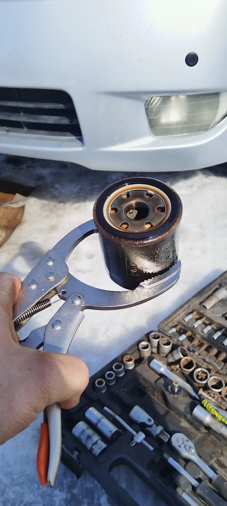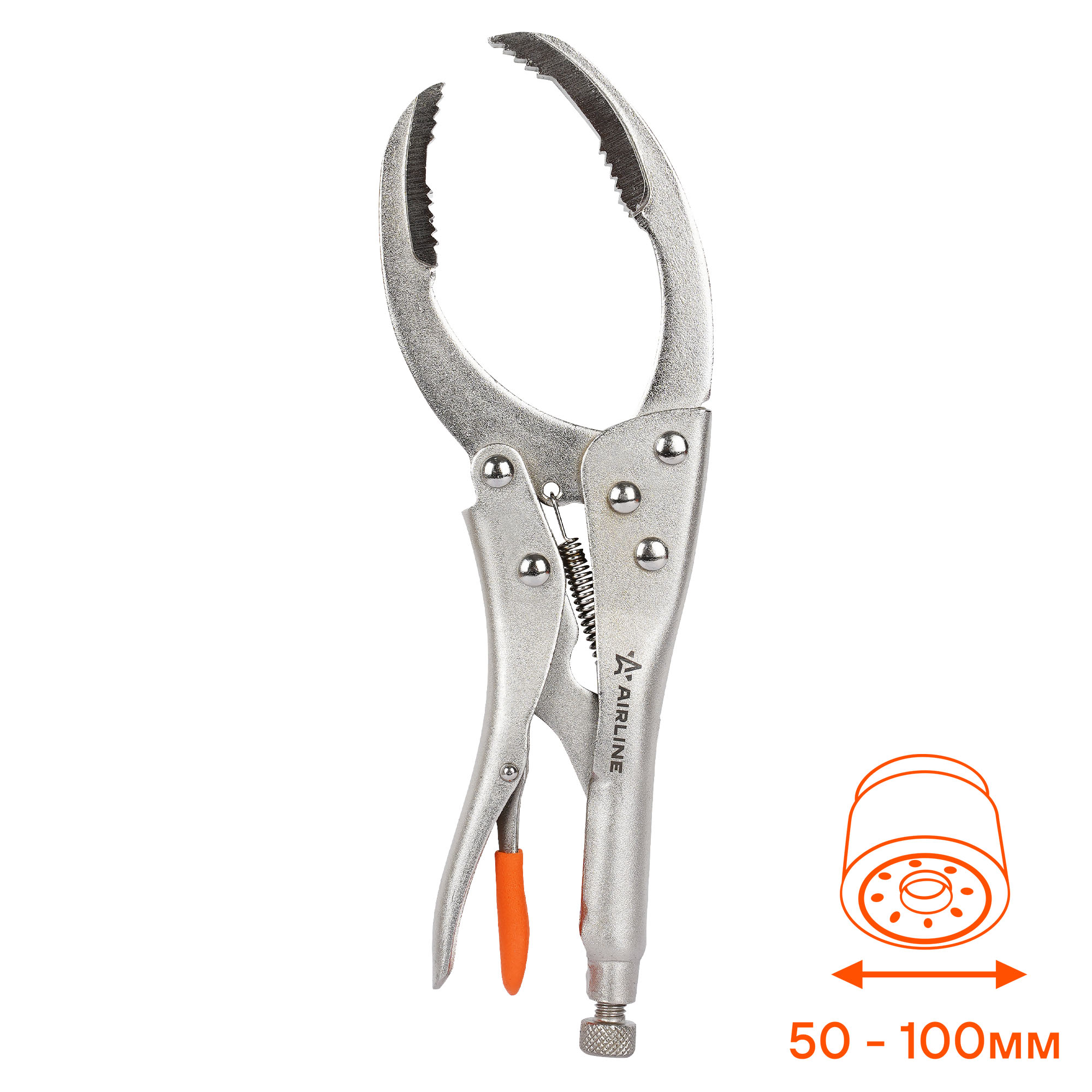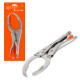 Инструмент поможет произвести демонтаж масляного фильтра автомобиля. Конструкция для съема фильтра представлена в виде захвата, с помощью которого производится сниятие или установка детали. Съемник изготовлен из металла. Размер захвата равен 240мм. С помощью зубчатой формы захватов съемник плотно фиксирует деталь, не допуская ее прокручивания во время монтажа или демонтажа.