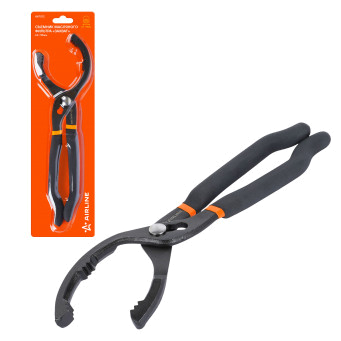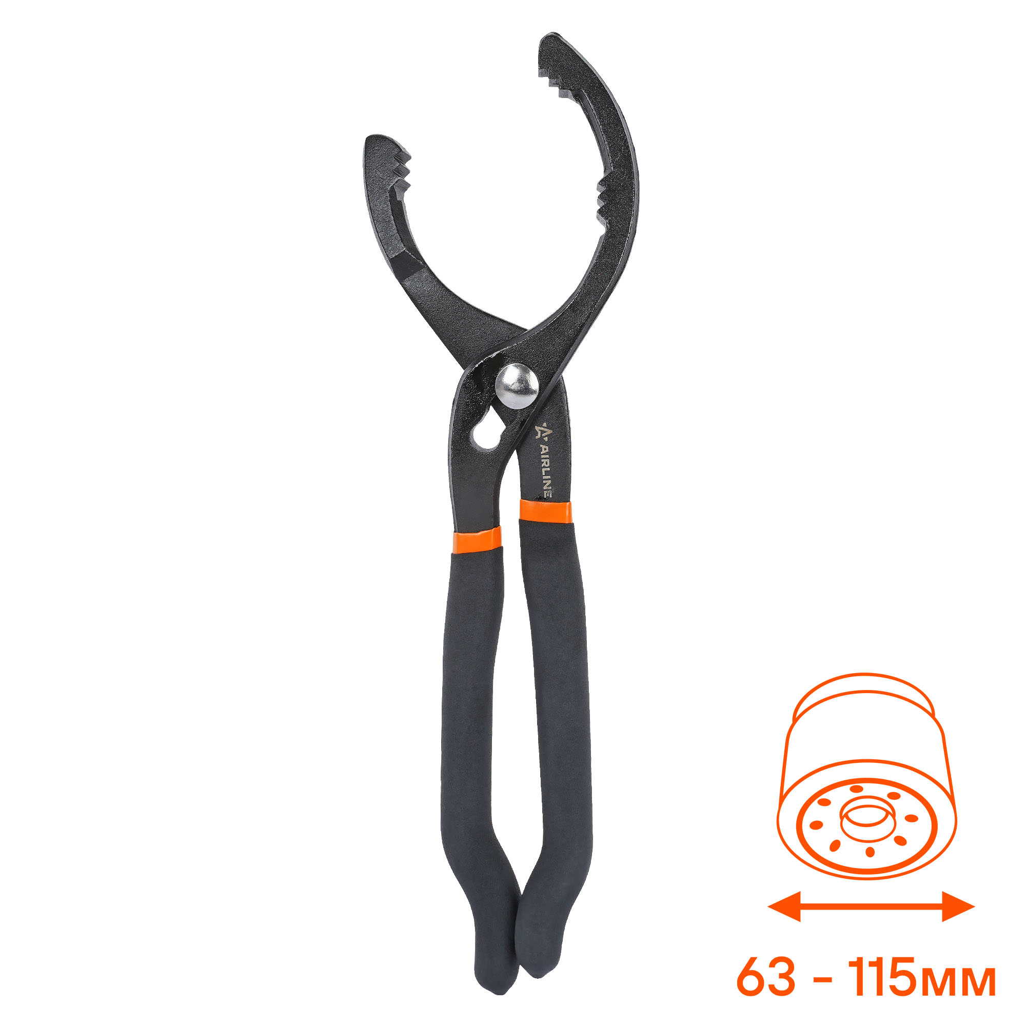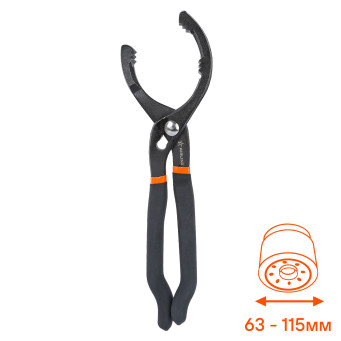 Инструмент поможет произвести демонтаж масляного фильтра автомобиля. Конструкция для съема фильтра представлена в виде захвата, с помощью которого производится сниятие или установка детали. Съемник изготовлен из металла. Размер захвата составляет 63-115 мм. инструмент может применяться не только как при монтаже или демонтаже масляных фильтров, так и при выполнении других слесарных работ, где требуется применение дополнительного усилия на деталь.