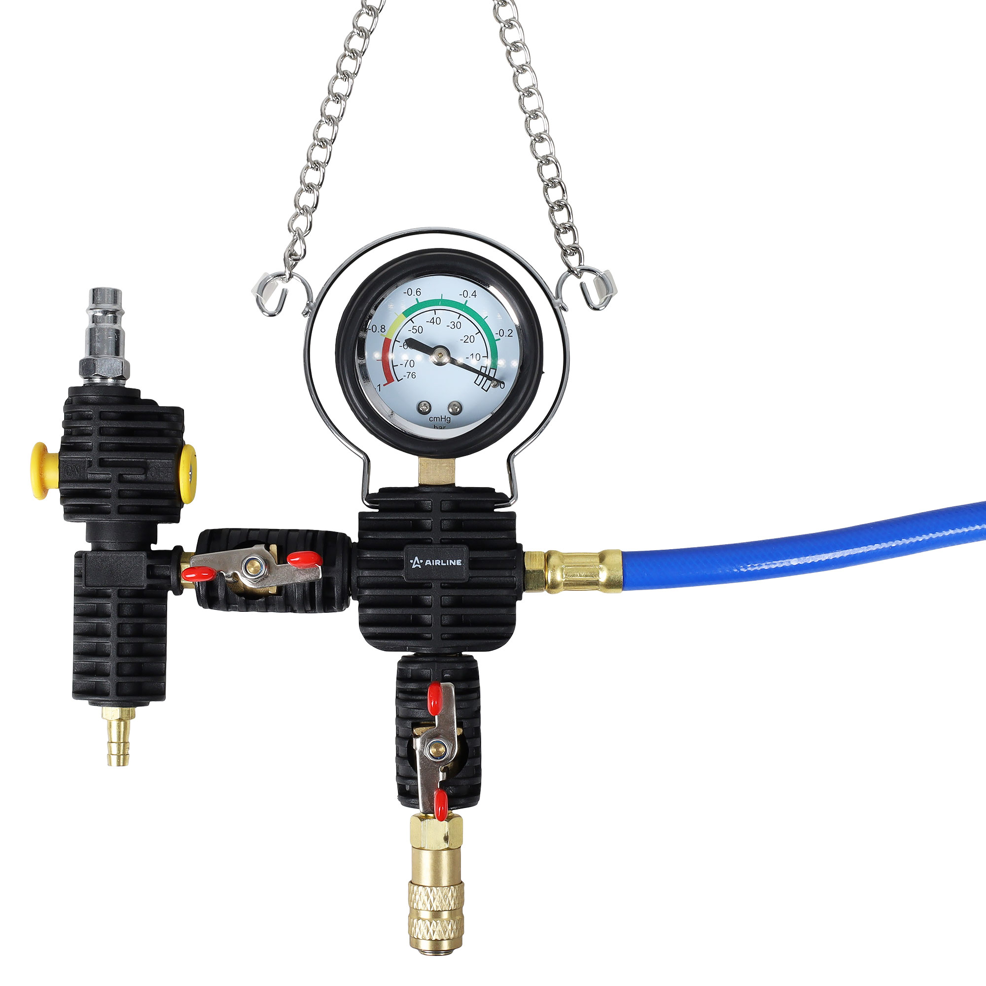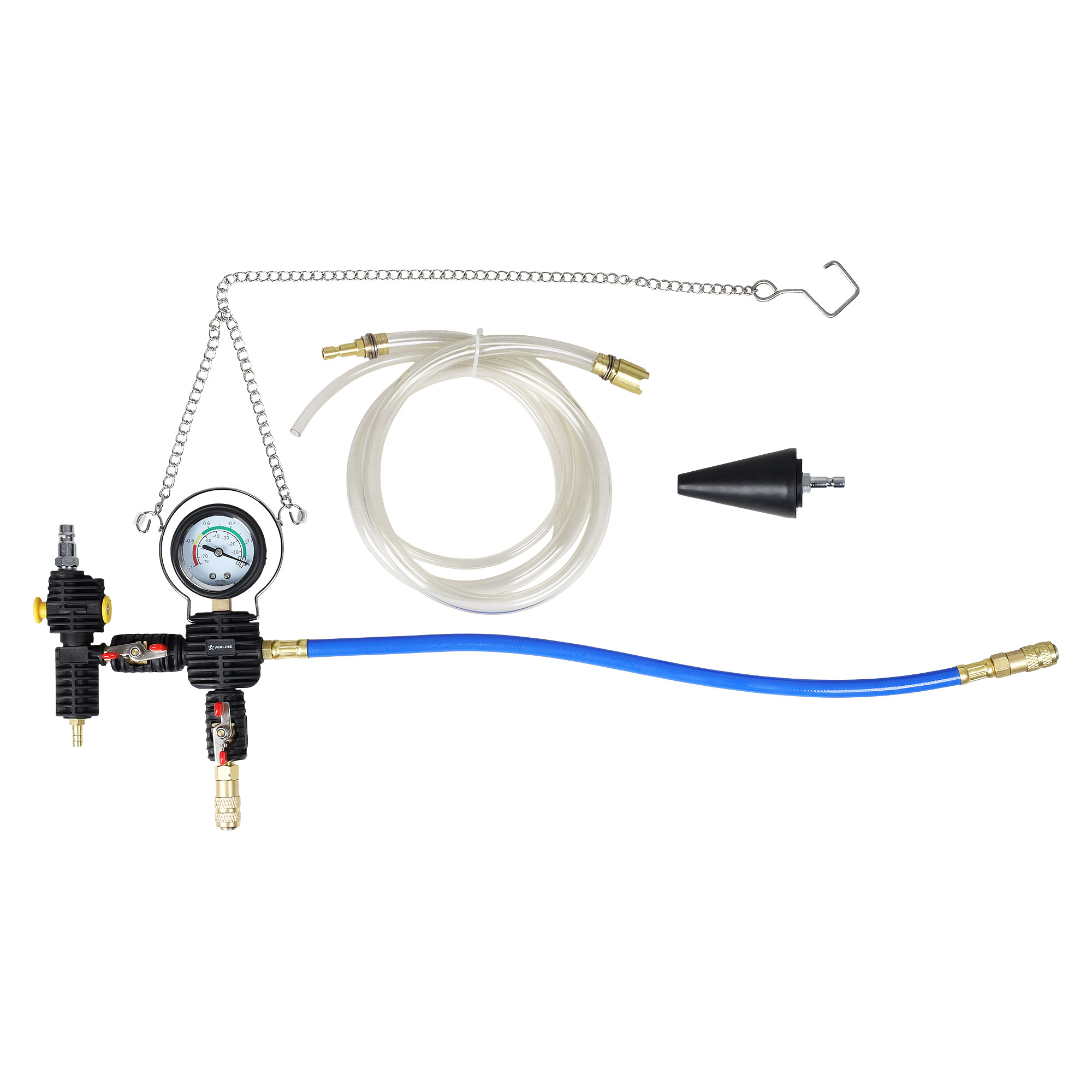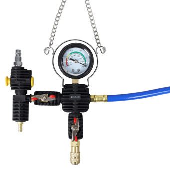 Приспособление для заправки системы охлаждения используется для заполнения системы охлаждения охлаждающей жидкостью с помощью вакуума. Устанавливается на горловину расширительного бачка или горловину радиатора любого диаметра за счет универсального резинового конуса. Не допускает завоздушивания системы.