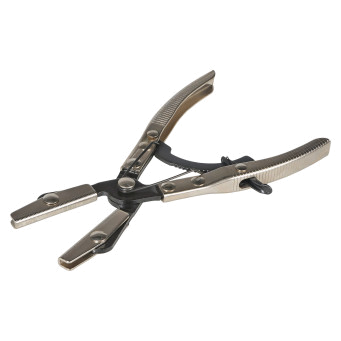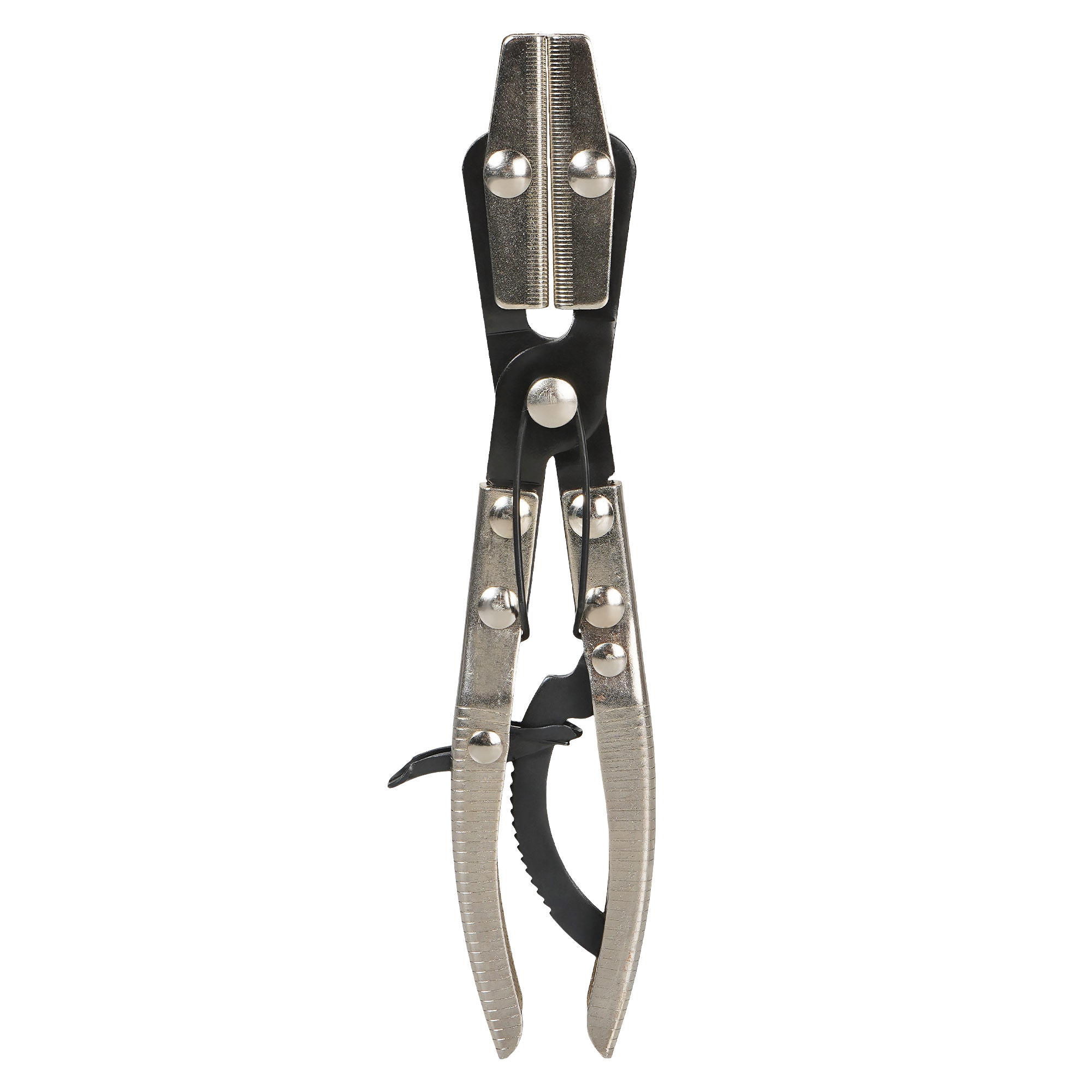 Зажим с фиксатором для шлангов L=200мм., предназначен для временного перекрытия топливных, вакуумных и охлаждающих шлангов во время технического обслуживания и ремонта. Позволяет быстро и надежно зафиксировать шланг, предотвращая утечку жидкости или воздуха.