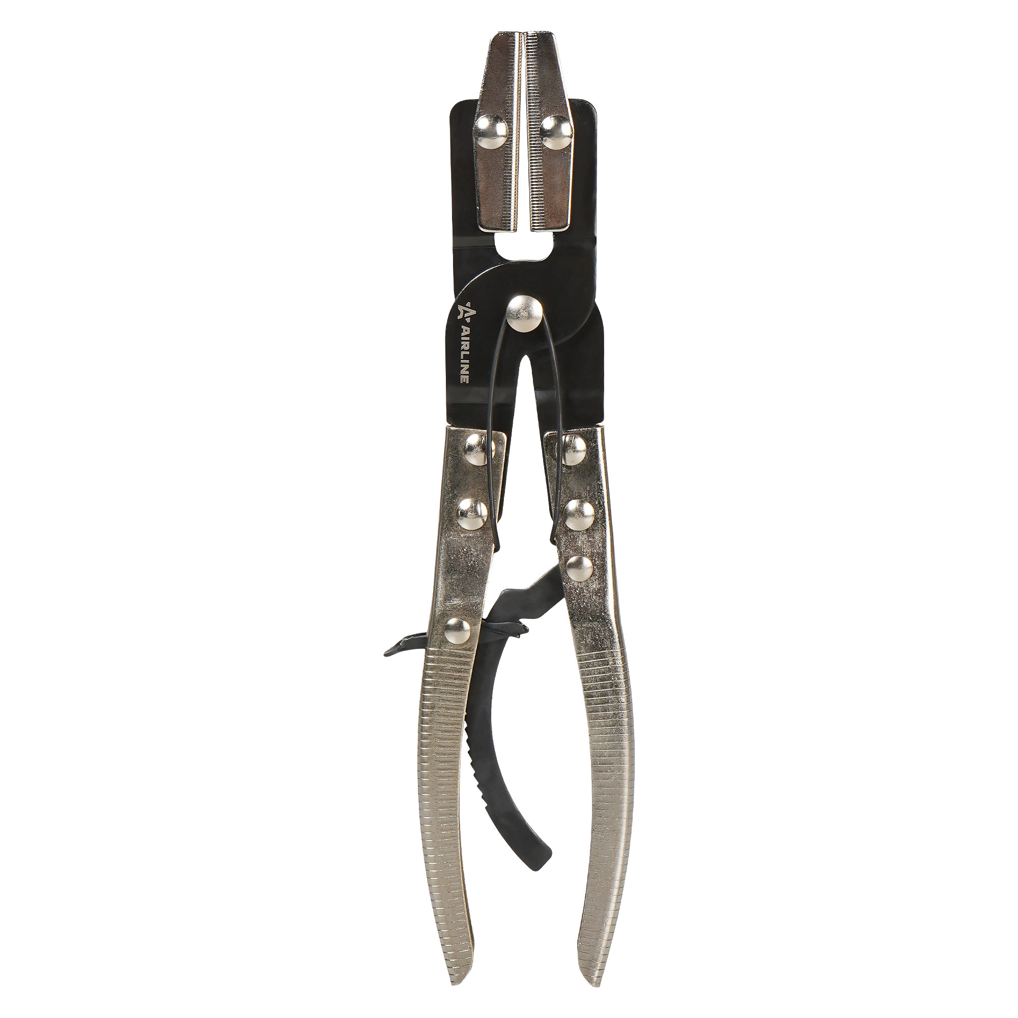 Зажим с фиксатором для шлангов L=300мм предназначен для временного перекрытия топливных, вакуумных и охлаждающих шлангов во время технического обслуживания и ремонта. Позволяет быстро и надежно зафиксировать шланг, предотвращая утечку жидкости или воздуха. Длина губок – 75мм. Рабочий диапазон – 0-38мм.