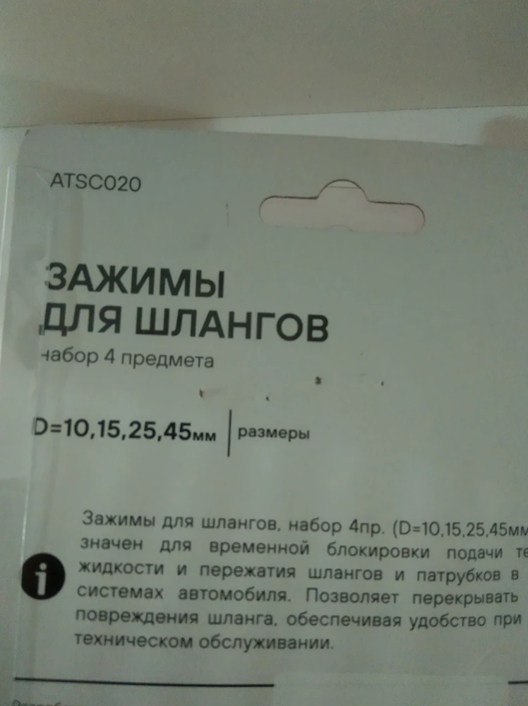 Зажимы для шлангов, набор 4пр. (D=10,15,25,45мм)., предназначен для временной блокировки подачи технической жидкости и пережатия шлангов и патрубков в различных системах автомобиля. Позволяет перекрывать поток без повреждения шланга, обеспечивая удобство при ремонте и техническом обслуживании.