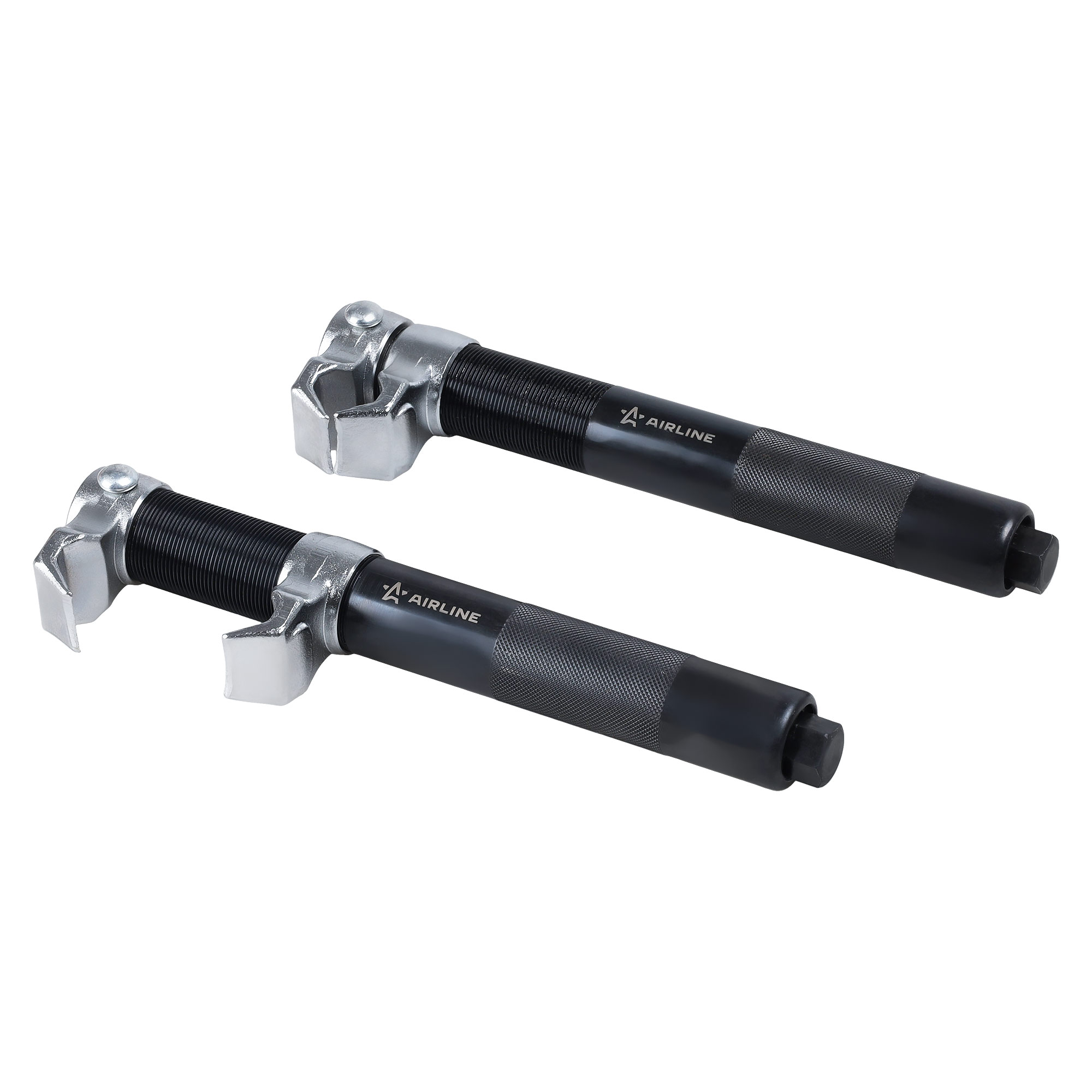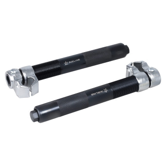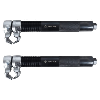 Набор из двух усиленных стяжек предназначен для безопасной установки и демонтажа пружин подвески автомобилей. Оснащены защитными захватами и регулируемыми планками для надежной фиксации и безопасной работы.