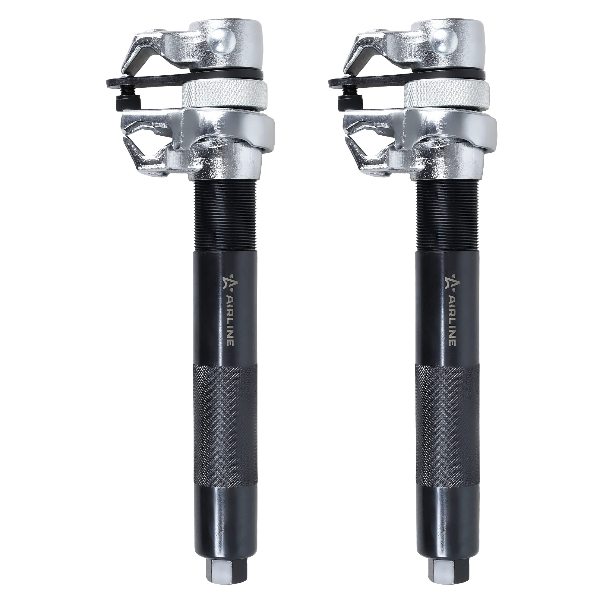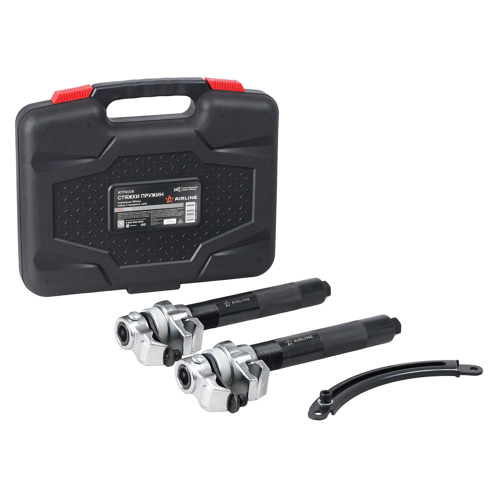 Профессиональный набор стяжек для обслуживания автомобильной подвески. Оснащён усиленными корпусами и защитной дугой для надежной и безопасной работы с винтовыми пружинами при их установке и демонтаже.