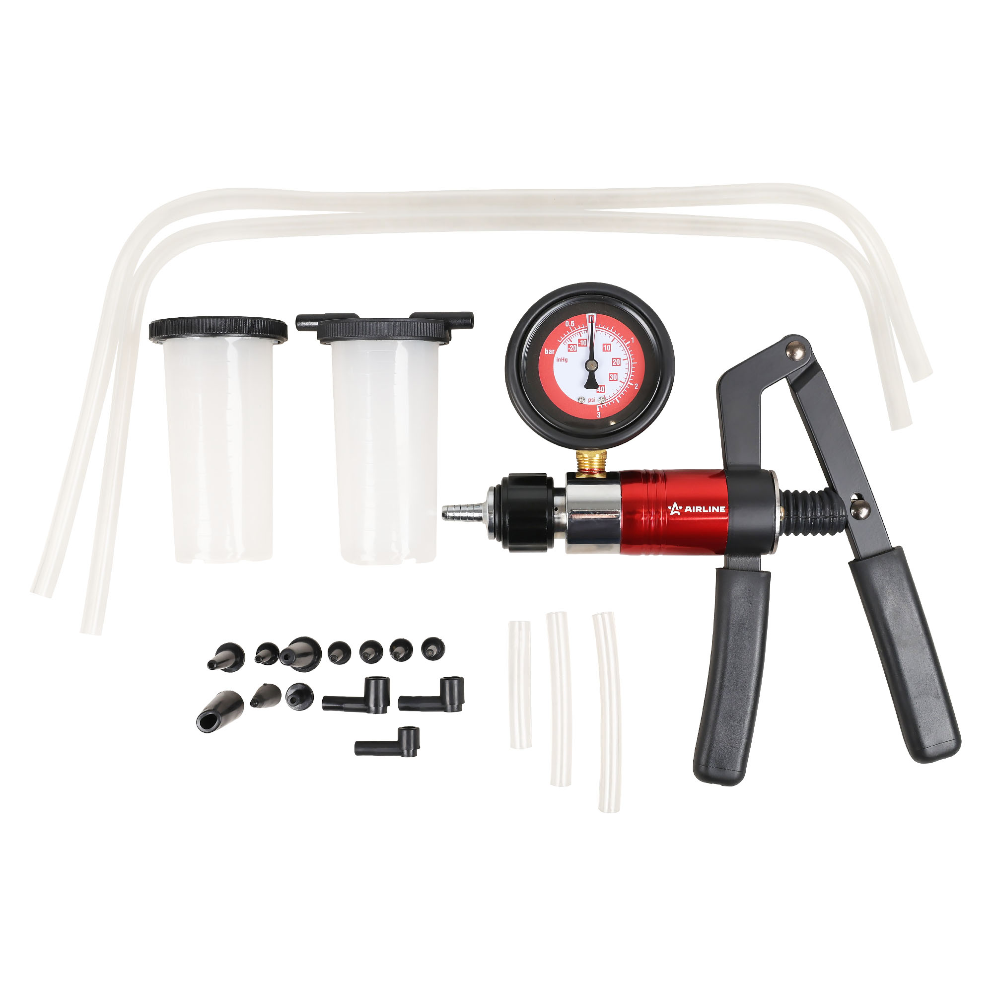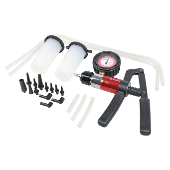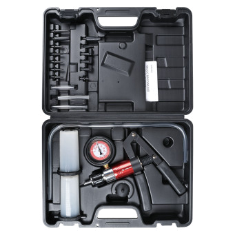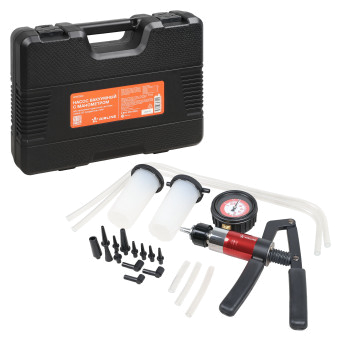Профессиональный набор для прокачки тормозной системы и диагностики вакуумных систем автомобиля. Позволяет быстро удалить воздух из тормозной системы, проверить герметичность вакуумных линий, клапанов, коллекторов и других узлов.