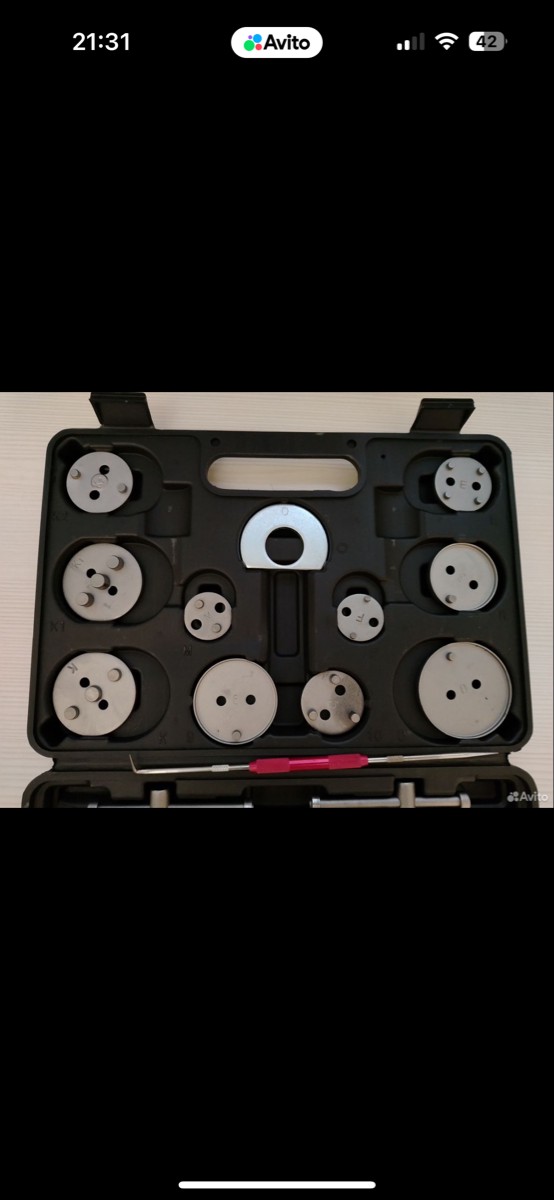 Профессиональный набор из 21 предмета предназначен для обслуживания тормозных суппортов. Используется при замене тормозных колодок для безопасного и быстрого утапливания тормозных поршней без риска повреждения деталей.