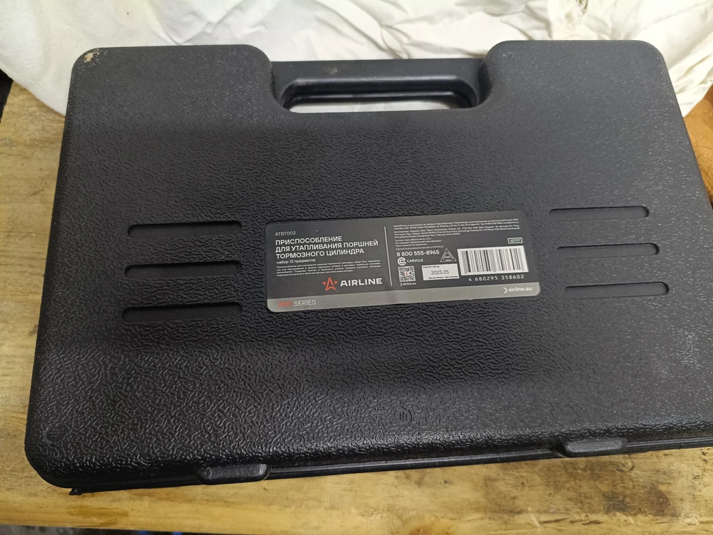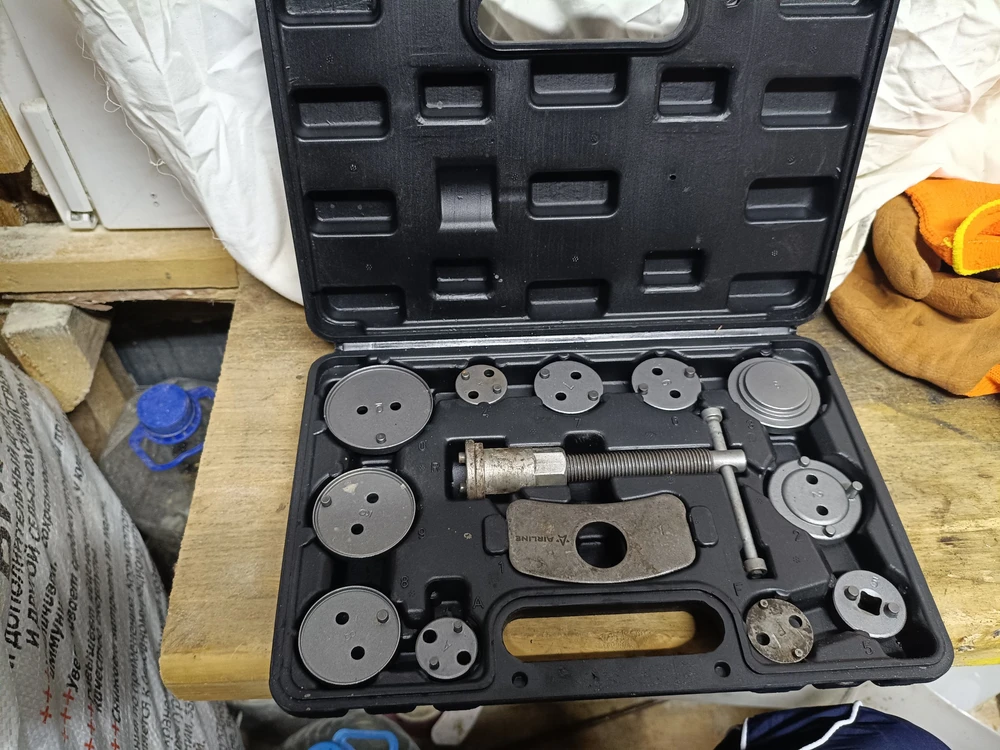 Приспособление для утапливания поршней тормозного цилиндра, набор 13пр. предназначен для обслуживания и замены тормозных колодок в дисковых тормозных системах автомобилей. Позволяет быстро и безопасно утопить поршень суппорта, исключая повреждение деталей и облегчая процесс монтажа новых колодок.