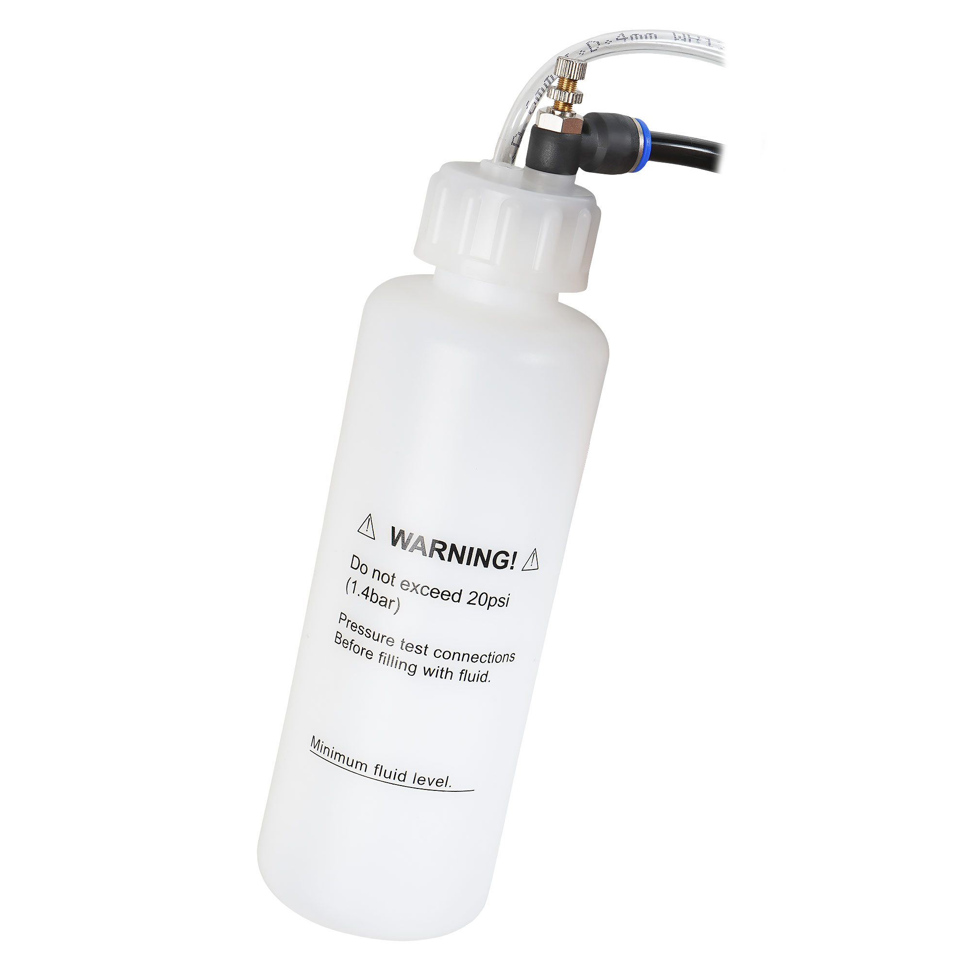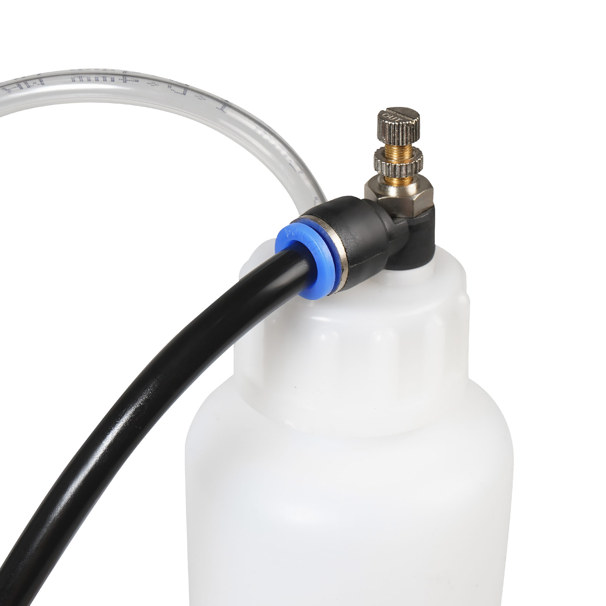 Приспособление для замены тормозной жидкости и прокачки гидравлических приводов тормозных систем и цилиндров сцепления представляет собой устройство, с помощью которого осуществляется производство работ по прокачке гидравлических контуров приводов тормозных механизмов, рабочих цилиндров приводов сцепления и замене рабочих жидкостей. Изделие представляет собой емкость с адаптером, который устанавливается на бачок гидравлического привода. Шланг с коннектором подключается к ниппелю колеса автомобиля. С помощью регулировочного клапана изделия устанавливается интенсивность подачи сжатого воздуха в систему, что позволяет при предварительном заполнении емкости приспособления рабочей жидкостью, замену последней замещением. Преимуществом использования данного приспособления является отсутствие необходимости наличия второго оператора для производства вышеописанных работ.