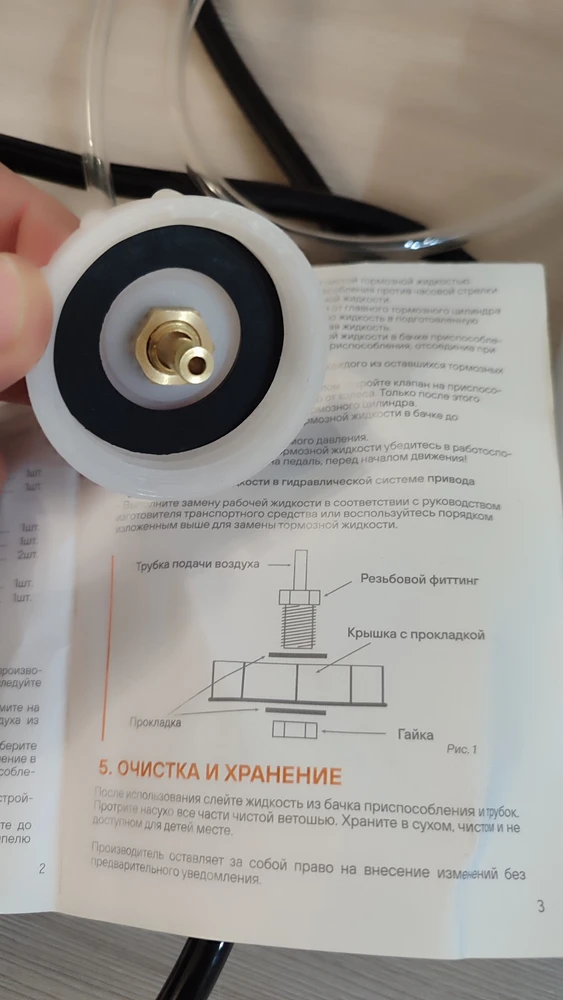 Из всего набора пришлось выкинуть 50% всего, из оставшегося собрать конструкцию для принудительной выкачки тормоухи. По назначению не работает....Недостатки: В комплекте отсутствует прокладка под гайкий, указаннная на рис. 1 инструкции по эксплуатации. Шланг перегнут в 3 местах. В комплекности указана тонкая прокладка для 44 мм, вместо неё толстая.