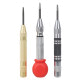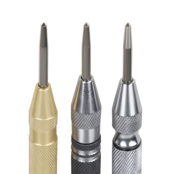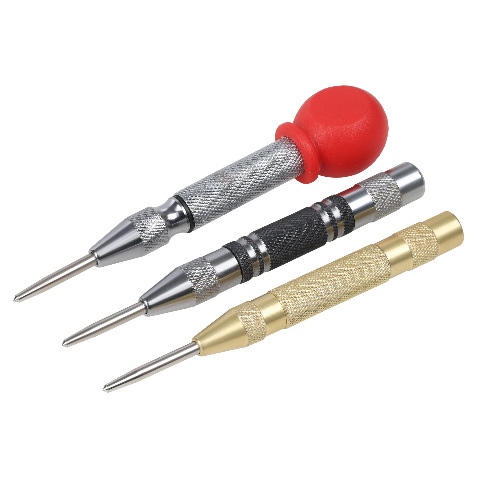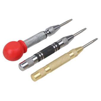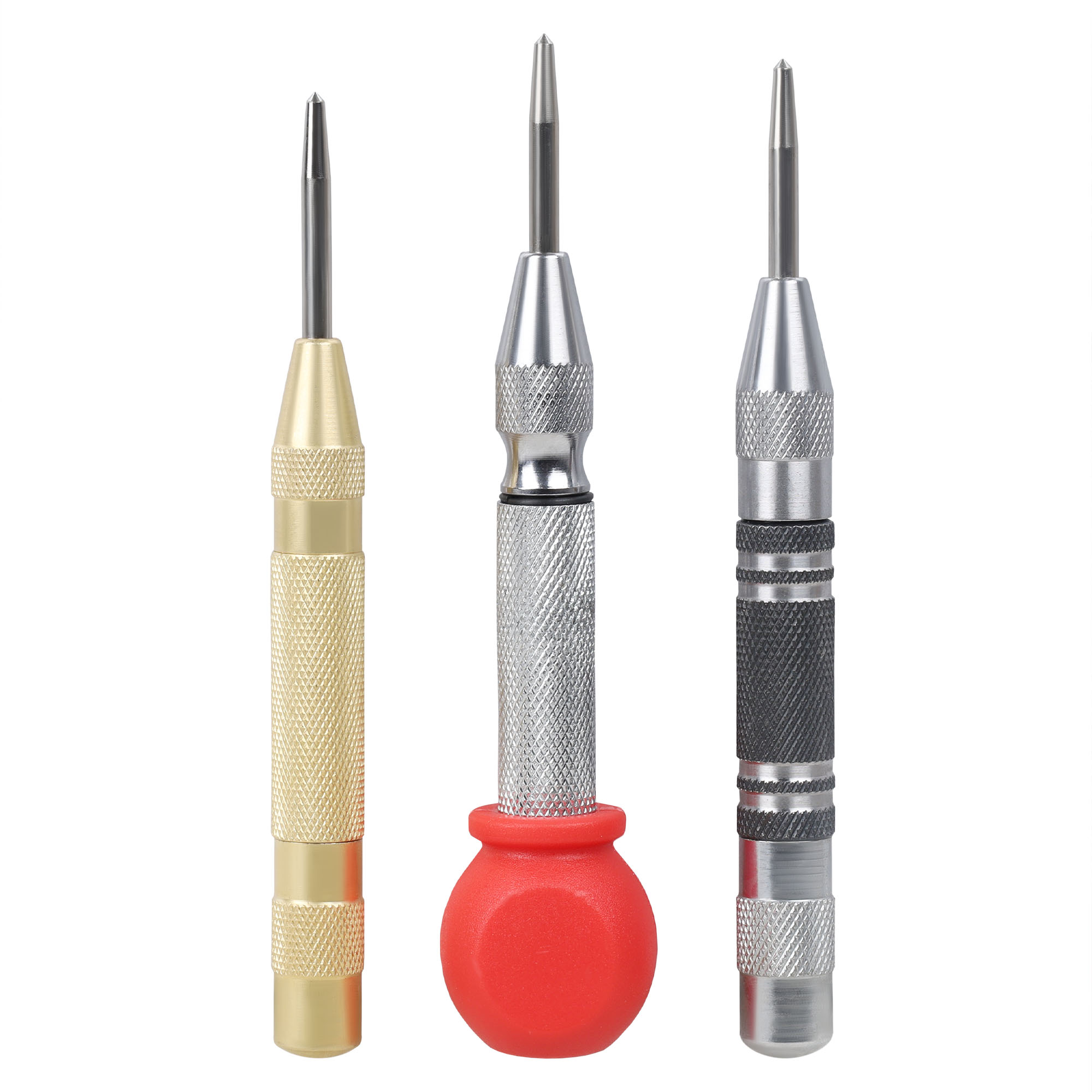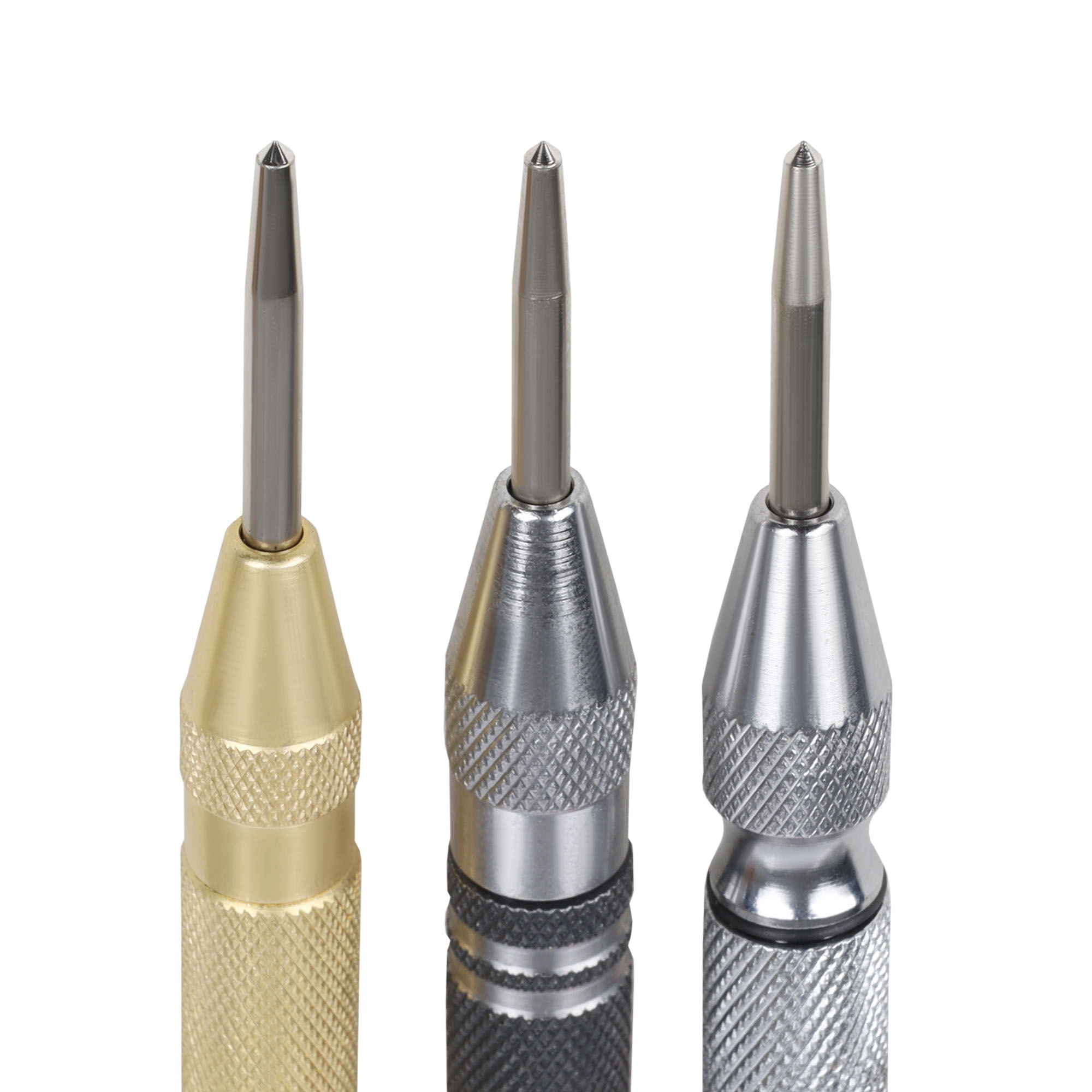 Набор из 3 автоматических кернеров включает модели с медным, стальным и стальным корпусом с пластиковой круглой ручкой. Предназначен для нанесения точных центровочных углублений без использования молотка. Автоматический ударный механизм обеспечивает постоянную силу накернивания и высокую точность позиционирования. Медный корпус снижает вибрацию и предотвращает искрообразование, стальной отличается повышенной прочностью и износостойкостью, а вариант с пластиковой ручкой обеспечивает удобный захват и комфорт при длительной работе. Набор оптимален для разметки по металлу, дереву и другим твёрдым материалам.