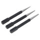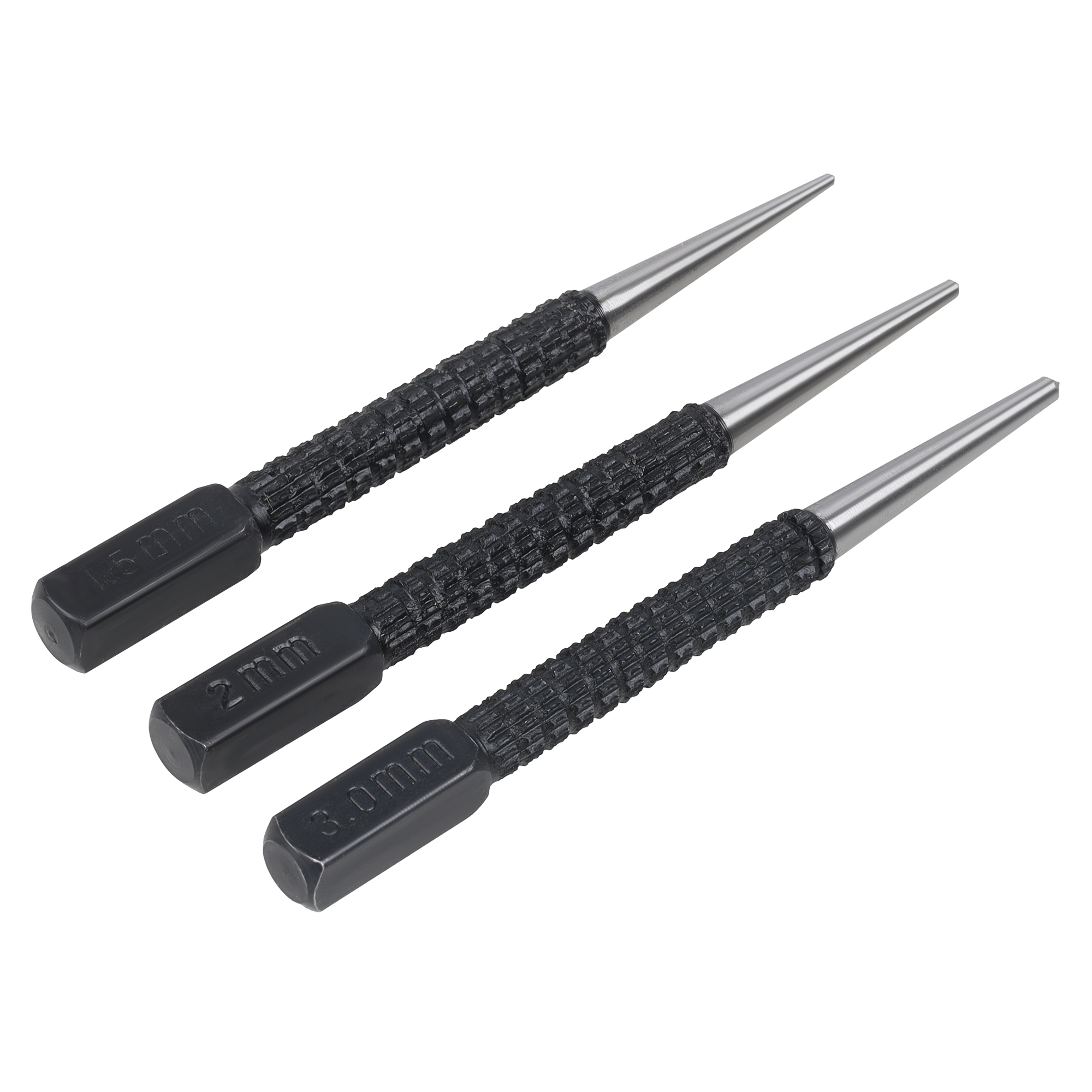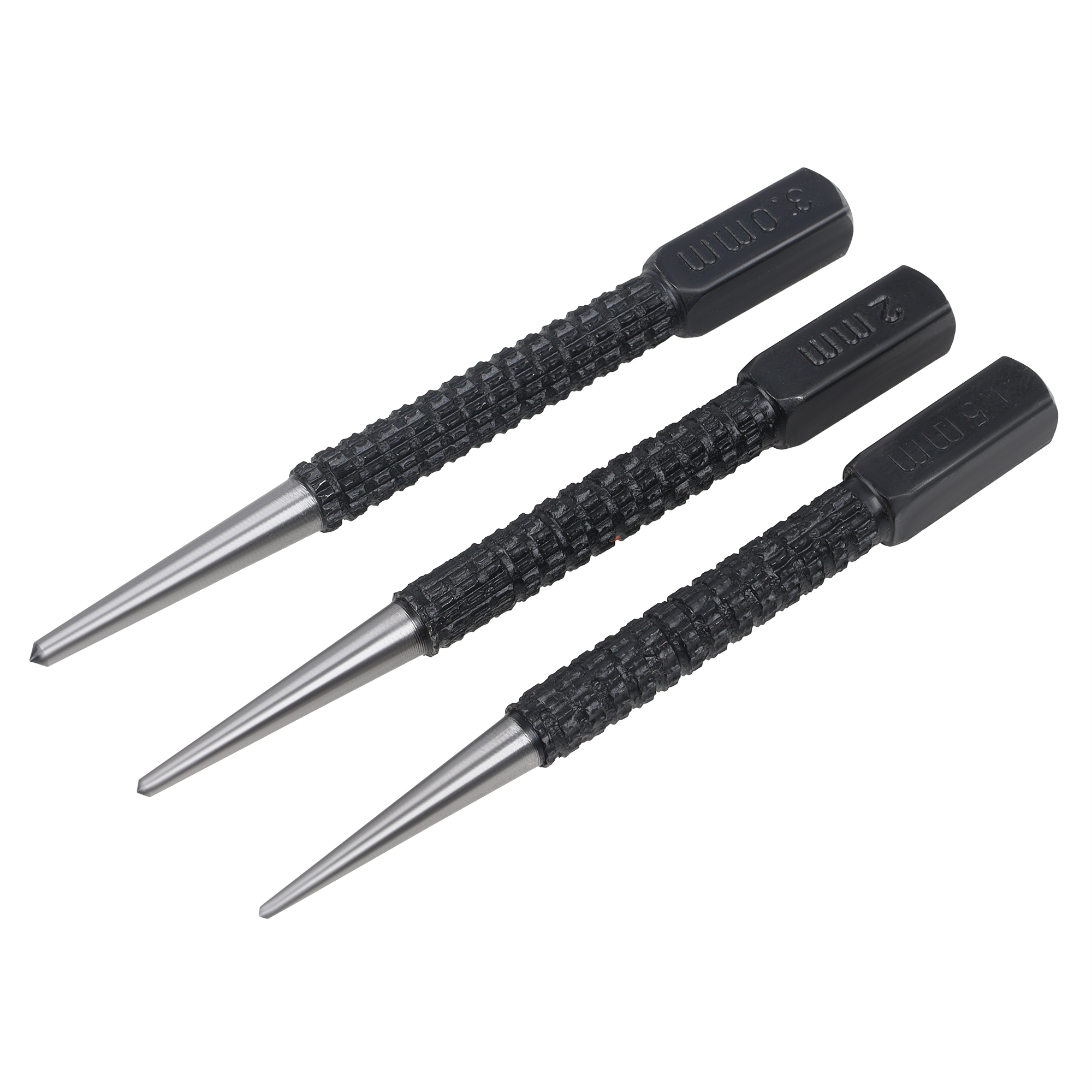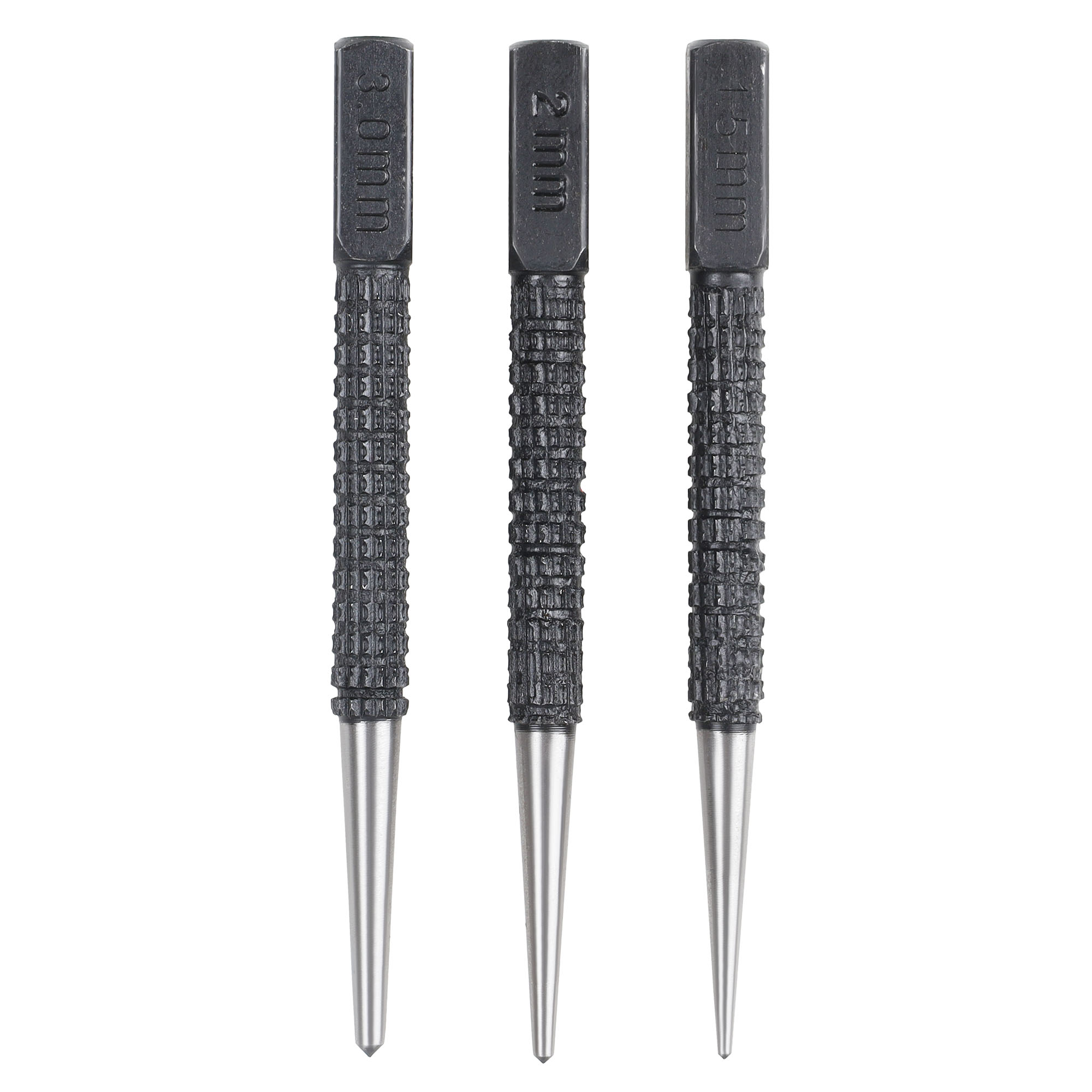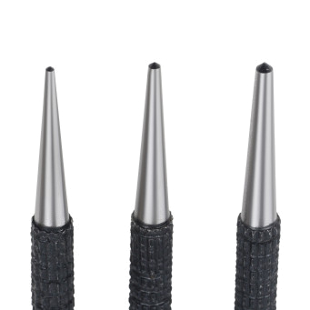 Набор из 3 кернеров с насечками предназначен для точной разметки и нанесения центровочных углублений перед сверлением. Корпус инструментов выполнен из закалённой инструментальной стали, обеспечивающей высокую твёрдость и износостойкость. Насечки на рабочей поверхности и корпусе предотвращают скольжение в руке и обеспечивают надёжный захват при ударных нагрузках. Набор удобен в профессиональном и бытовом применении при работе с металлом, деревом и пластиком.