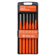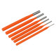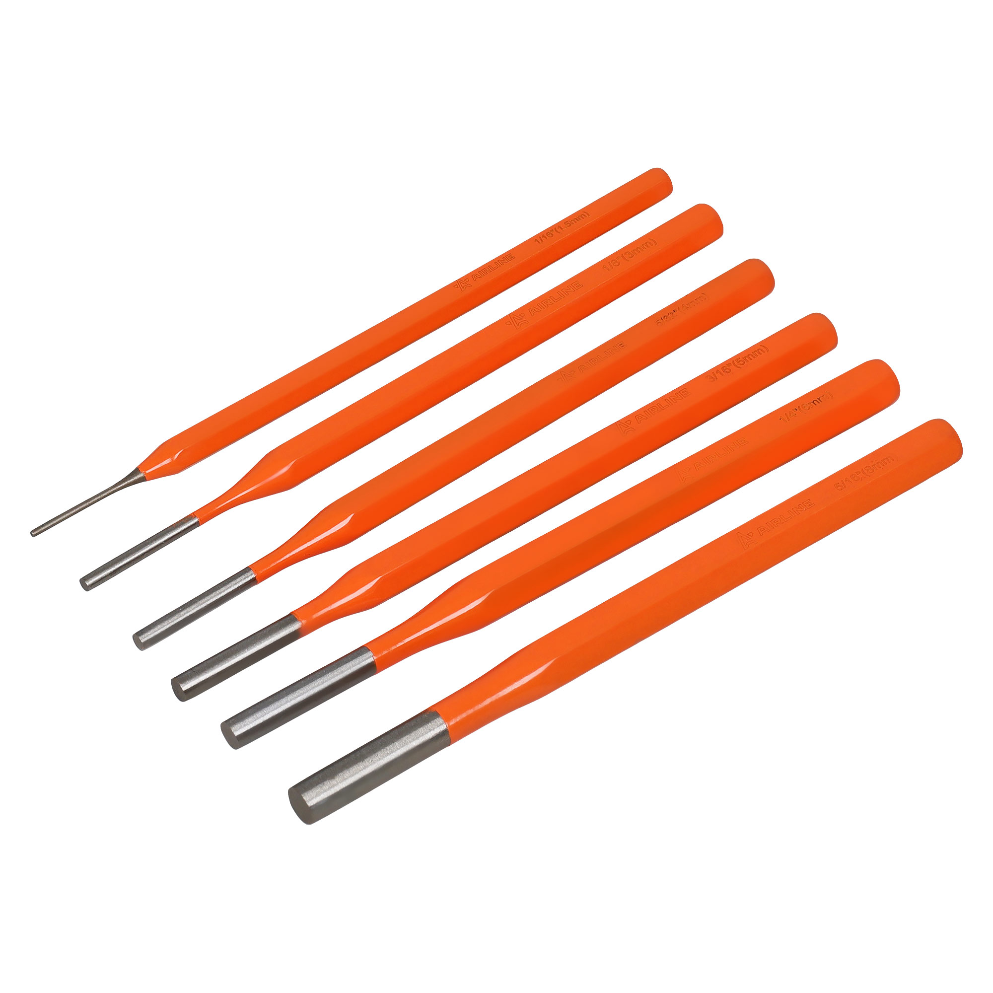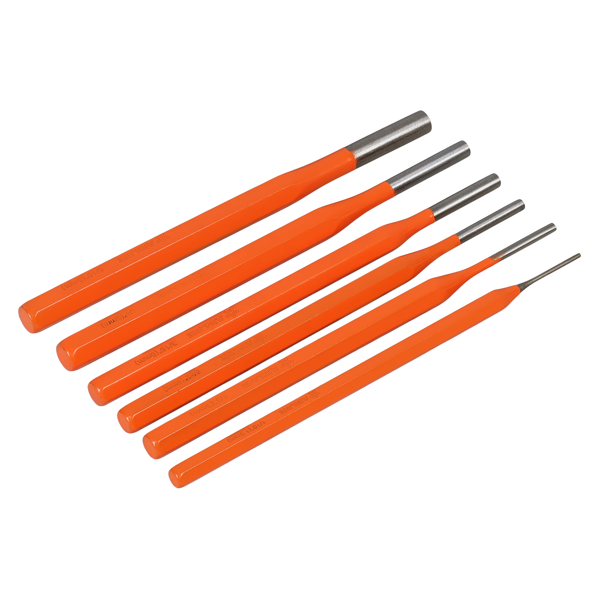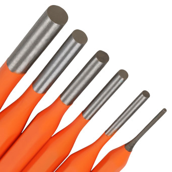 Набор (6 предметов) предназначен для выдалбливания отверстий, выбивания пазов и извлечения элементов крепежа, таких как шпильки, штифты и пробки, из различных материалов. Инструменты выполнены из высококачественной стали, которая обладает повышенной твердостью, стойкостью к ударным нагрузкам и износу. Набор включает выколотки диаметром 1.5, 3, 4, 5, 6 и 8 мм и оснащен удобным пластиковым держателем для безопасного хранения и предотвращения потери инструментов. Рекомендуется для профессионального использования благодаря высокой прочности, долговечности и устойчивости к внешним воздействиям.