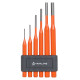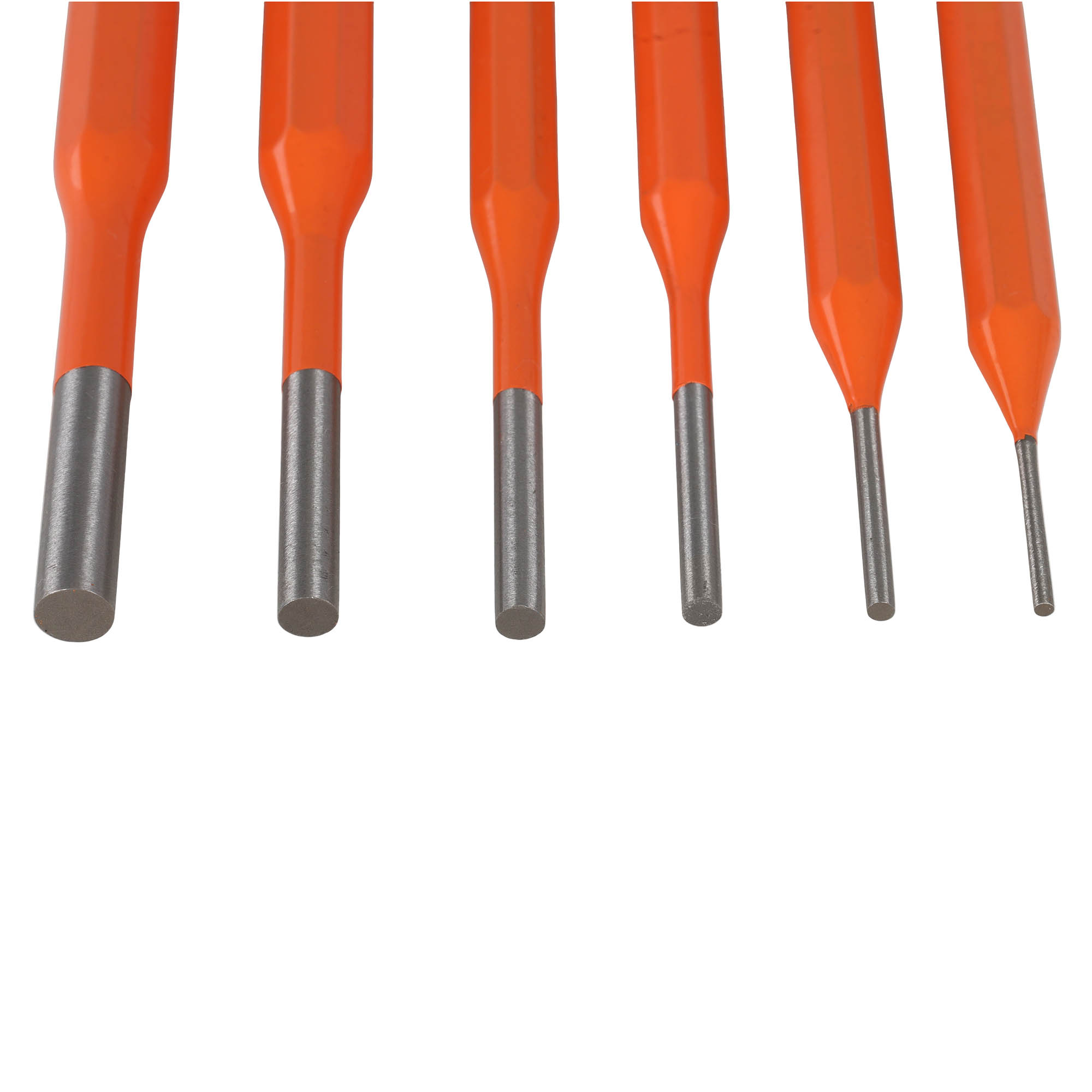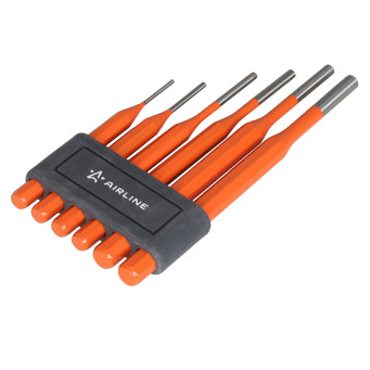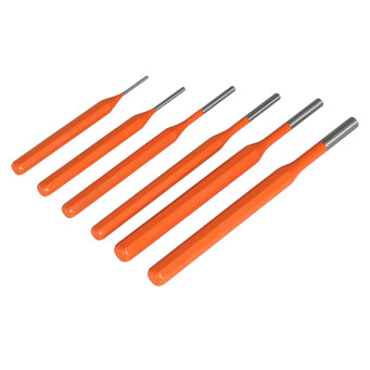 Набор (6 предметов) предназначен для выдалбливания отверстий, выбивания пазов и извлечения элементов крепежа, таких как шпильки, штифты и пробки, из различных материалов. Инструменты выполнены из высококачественной стали, которая обладает повышенной твердостью, стойкостью к ударным нагрузкам и износу. Набор включает выколотки диаметром 2, 3, 4, 5, 6 и 8 мм и оснащен удобным пластиковым держателем для безопасного хранения и предотвращения потери инструментов. Рекомендуется для профессионального использования благодаря высокой прочности, долговечности и устойчивости к внешним воздействиям.