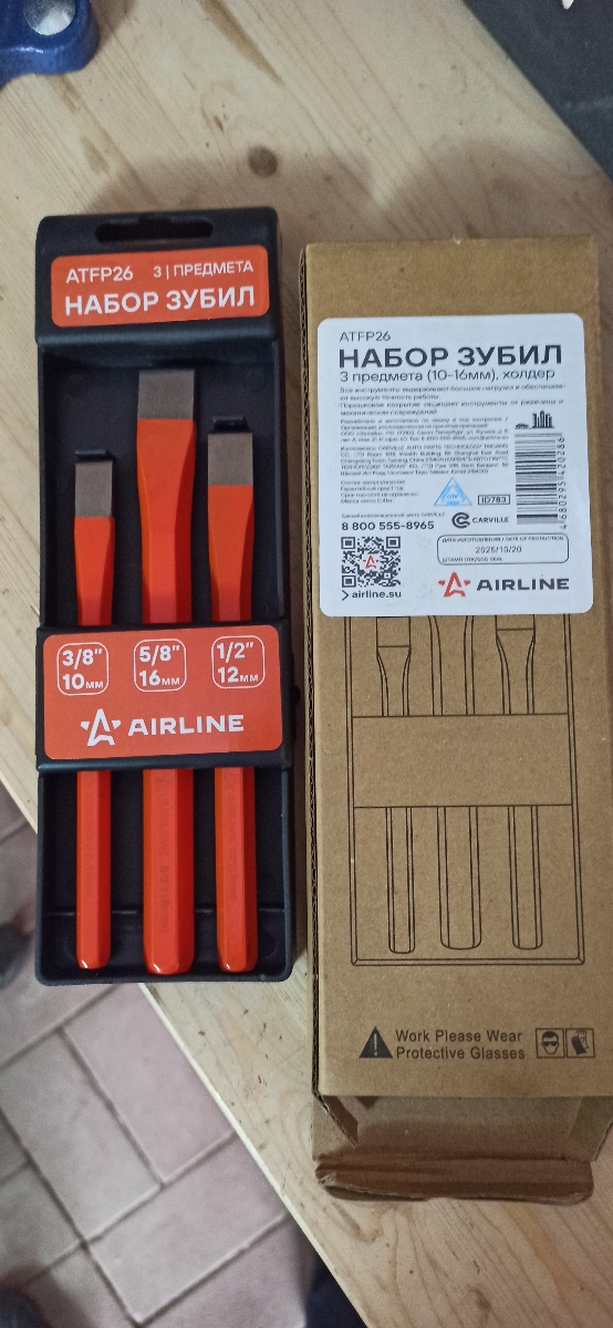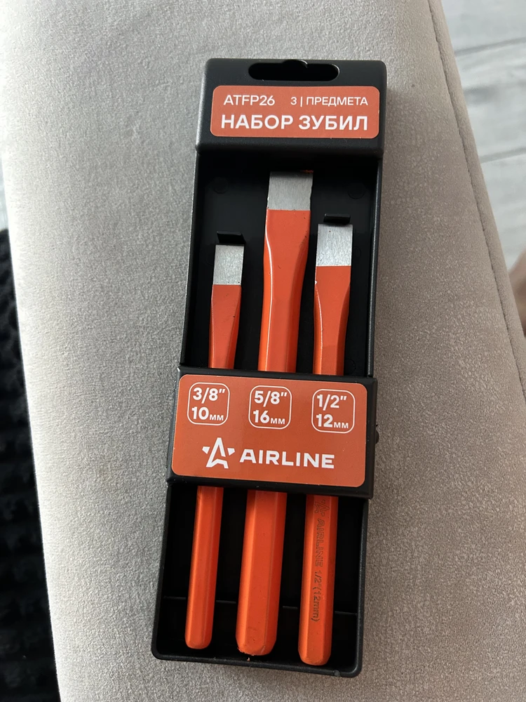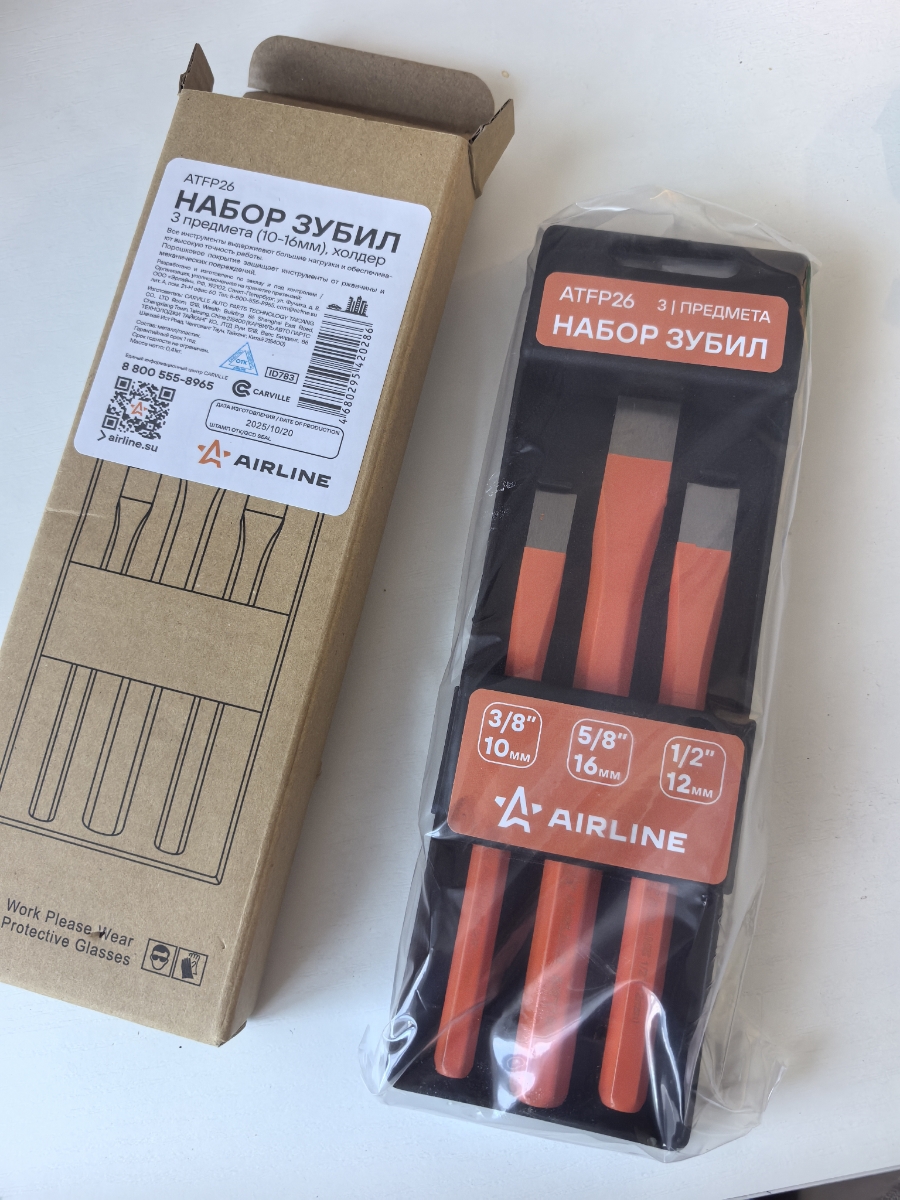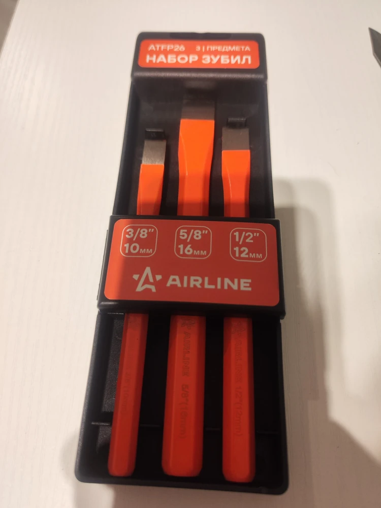 Зубила в удобном кейсе, и всегда будут хранится вместе. Есть возможность не потерять. Само зубило не совсем такое каким должно быть. Разрубил один черный саморез, и режущая кромка у зубила сразу закруглилось