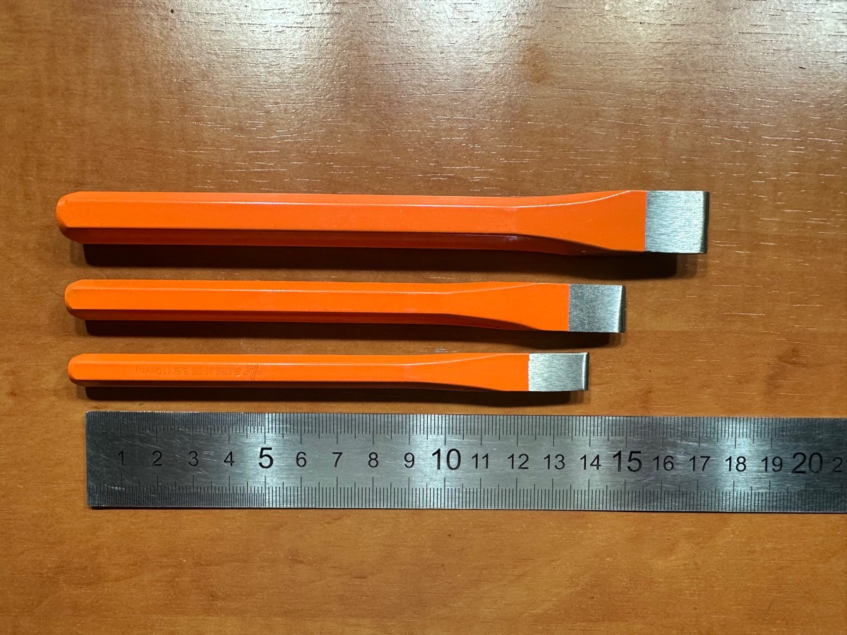 Набор (3 предмета) предназначен для проведения разнообразных слесарных, строительных и монтажных работ. В комплект входят три зубила, выполненные из высококачественной закалённой стали, что обеспечивает высокую прочность и стойкость к износу. Эти инструменты идеально подходят для работы с металлом, камнем, бетоном и другими твердыми материалами.