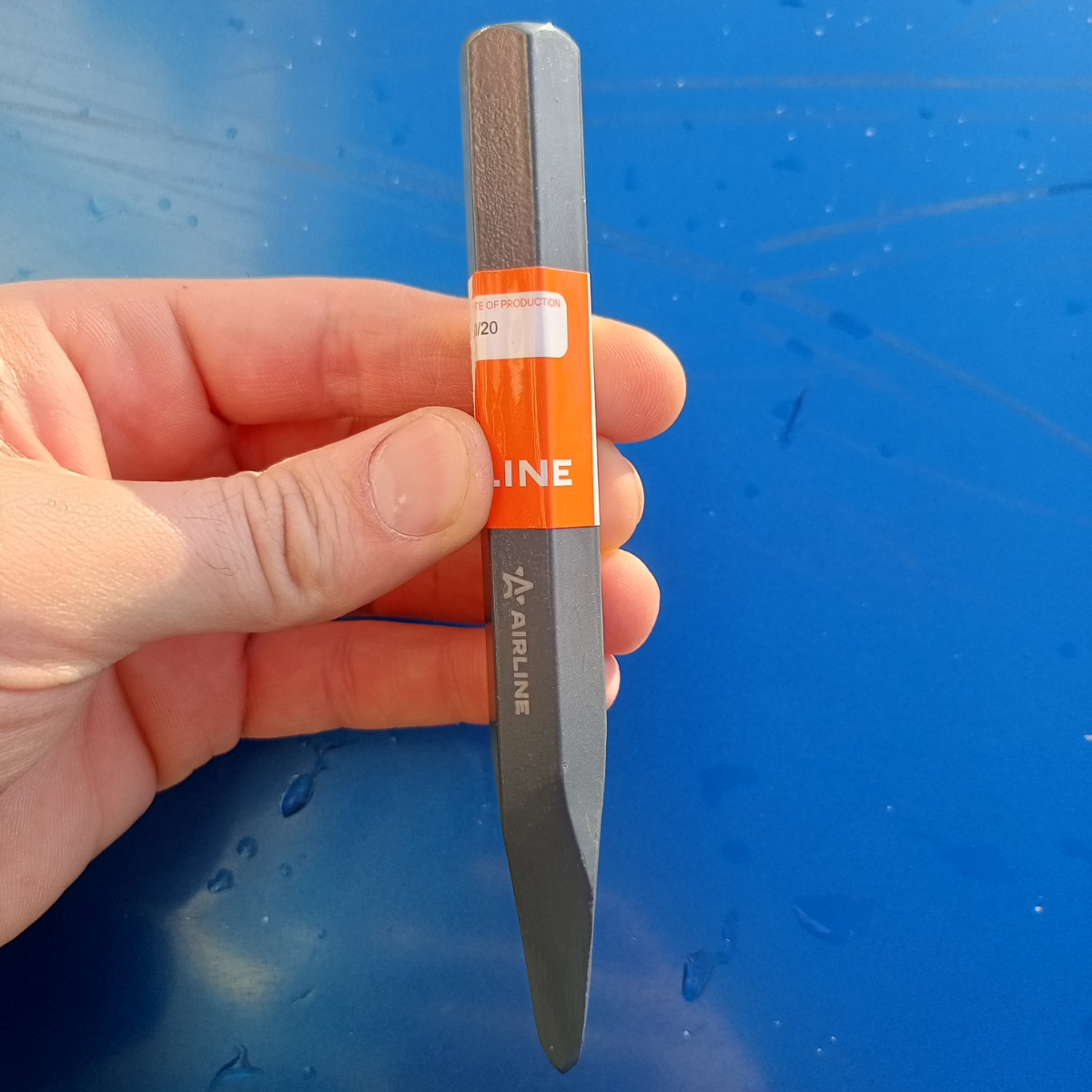 Высокопрочное зубило с пикообразной заострённой рабочей частью, предназначенно для точной разделки и удаления материала (металла, камня, бетона). Изготовлено из закалённой инструментальной стали, что гарантирует долговечность и стойкость к износу. Идеально подходит для слесарных, строительных и монтажных работ.