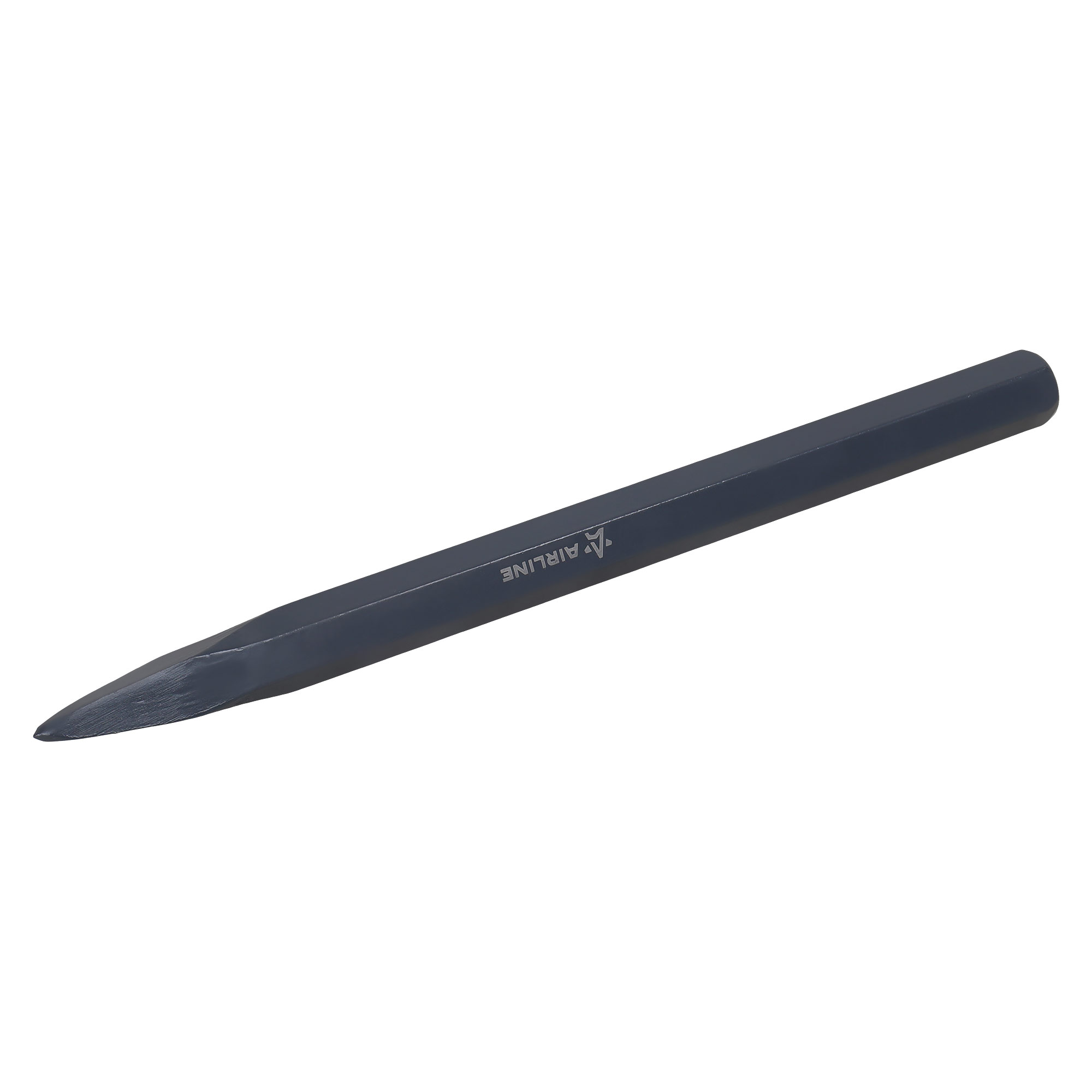 Высокопрочное зубило с пикообразной заострённой рабочей частью, предназначенно для точной разделки и удаления материала (металла, камня, бетона). Изготовлено из закалённой инструментальной стали, что гарантирует долговечность и стойкость к износу. Идеально подходит для слесарных, строительных и монтажных работ.