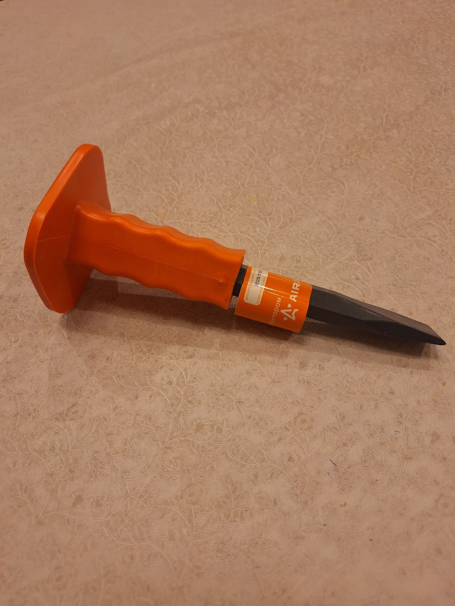 Высокопрочное зубило с заострённой рабочей частью, предназначенно для точной разделки и удаления материала (металла, камня, бетона). Изготовлено из закалённой инструментальной стали, что гарантирует долговечность и стойкость к износу. Оснащено пластиковым протектором для защиты рук при ударе. Идеально подходит для слесарных, строительных и монтажных работ.