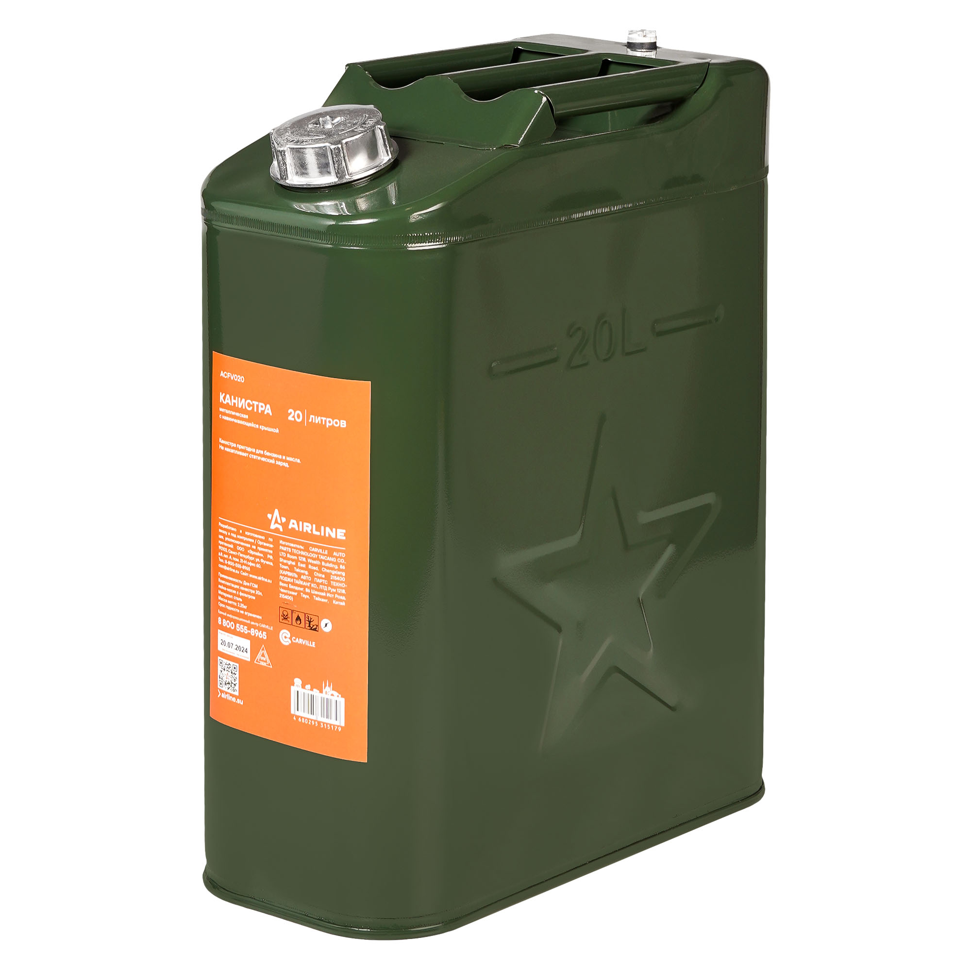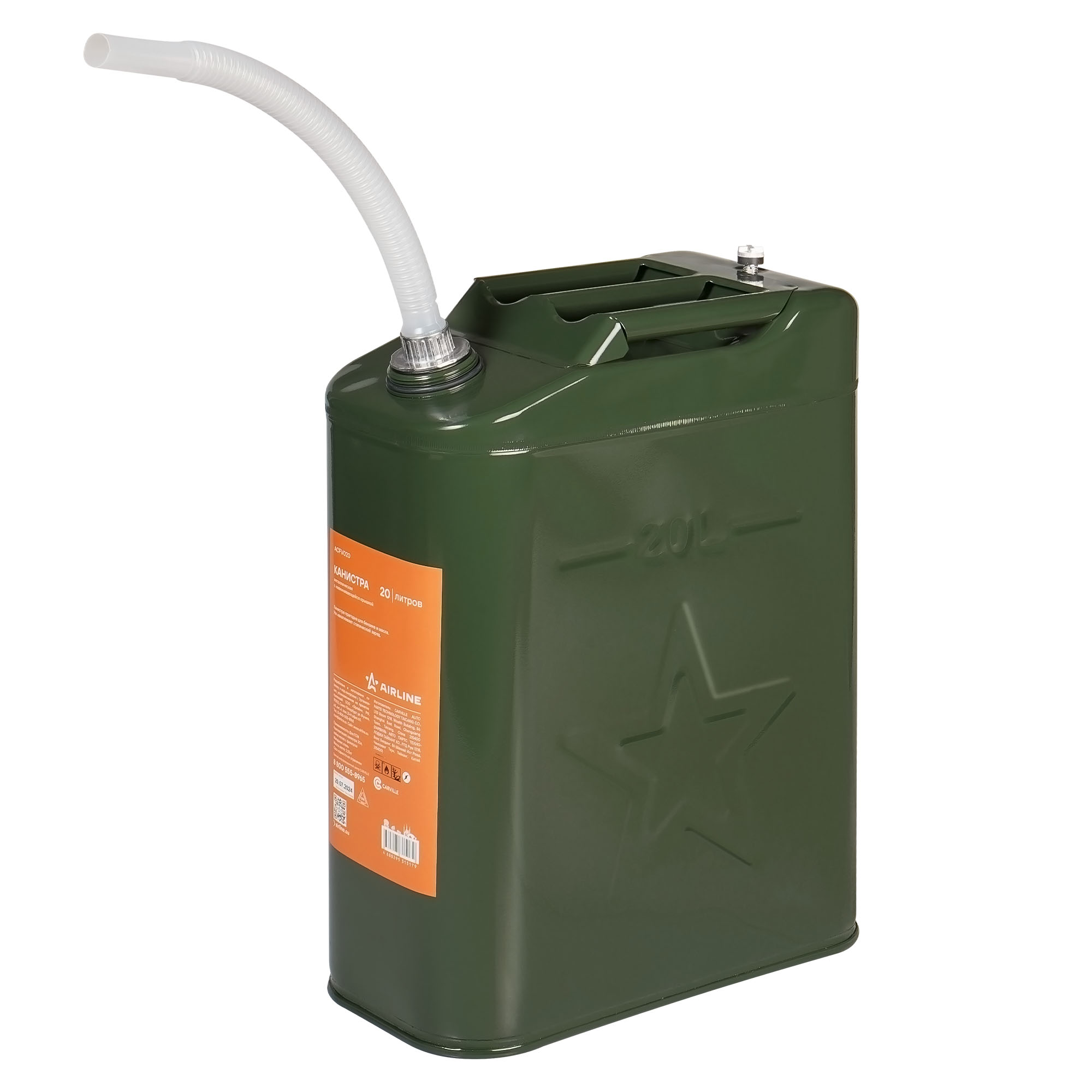 Автомобильные канистры для горючих жидкостей применяются, как дополнительная емкость для хранения топлива либо других технических/горючих жидкостей. Чаще всего они располагаются либо в багажном отделении, либо на борту автомобиля. Канистра AIRLINE ACFV020 имеет объем 20 литров, изготовлена из высококачественной стали, на корпусе канистры находится воздушных клапан. Внутри канистры расположен носик-лейка, благодаря которому можно удобно переливать жидкости в другие емкости или в горловину бензобака автомобиля. Носик-лейка оснащён фильтром резиновым уплотнением. Так как внутренняя поверхность канистры обработана антикоррозийным маслом, перед хранением ГСМ в ней обязательно промойте ее бензином. Канистра не предназначена для хранения воды.