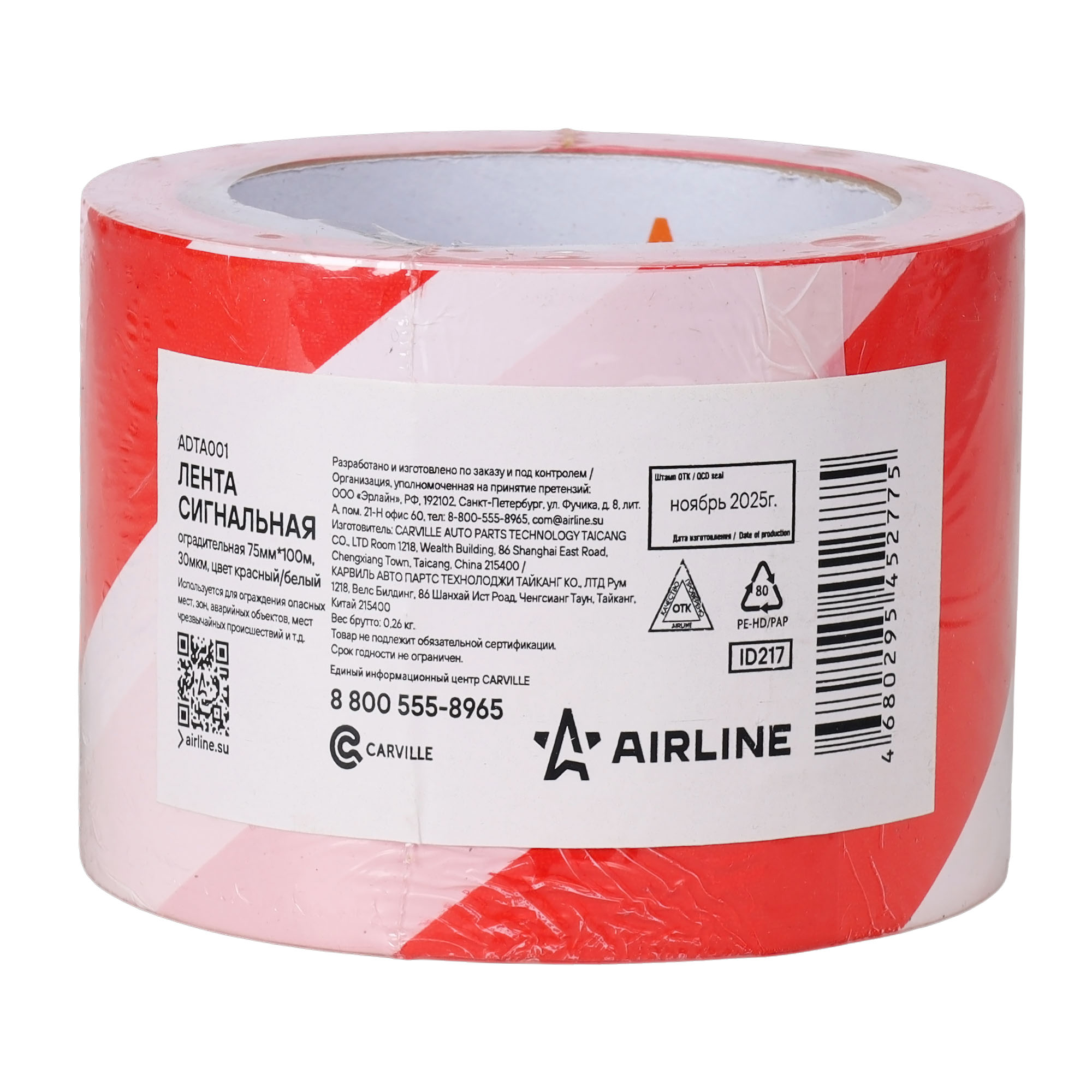 Лента сигнальная оградительная 75мм*100м, 30мкм, цвет красный/белый