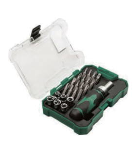 Набор головок и бит с трещоткой 23пр. (рукоятка, биты PH, SL, PZ, HEX, TORX), пласт. кейс МП-серия