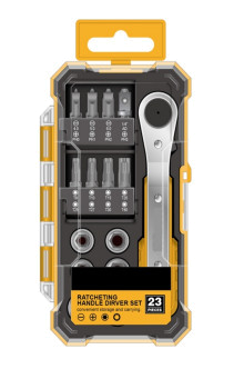 Набор головок и бит с трещоткой 23пр. (рукоятка, биты PH, SL, TORX), пласт. кейс